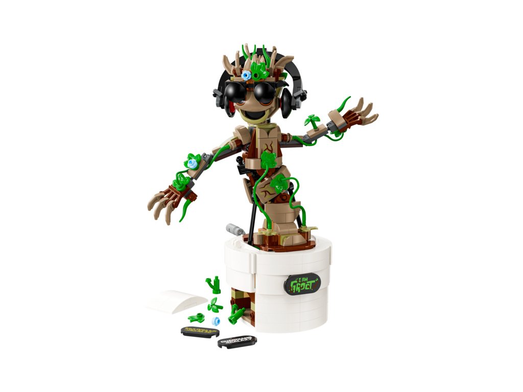 - Interaktivní tančící Groot – Když děti otočí držadlem na zadní straně sestavitelného modelu, kloubový Groot se pořádně rozjede