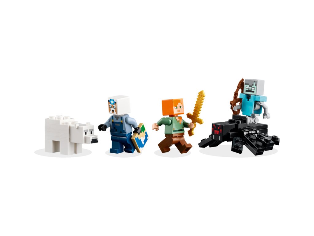 - Sběratelské figurky LEGO® Minecraft® – Stavebnice obsahuje minifigurky Alex, horníka a pavoučího jezdce a figurku pavouka, na kterém se dá jezdit, a ledního medvěda