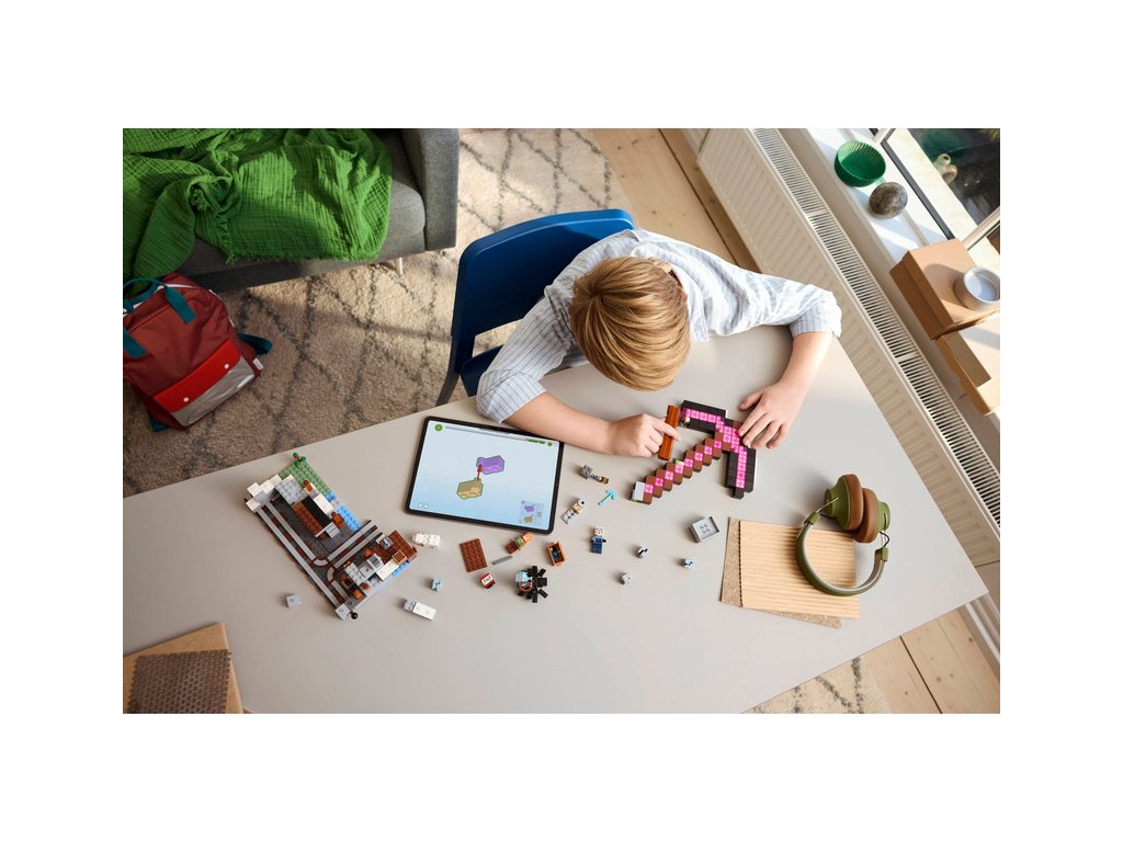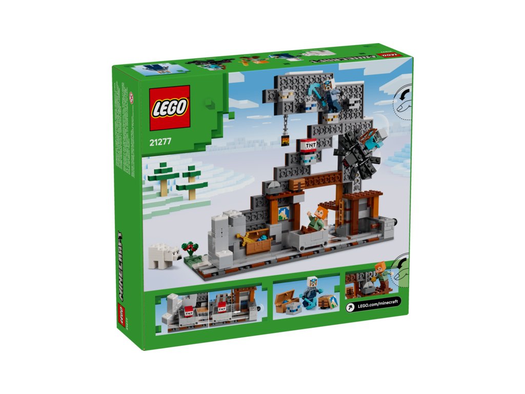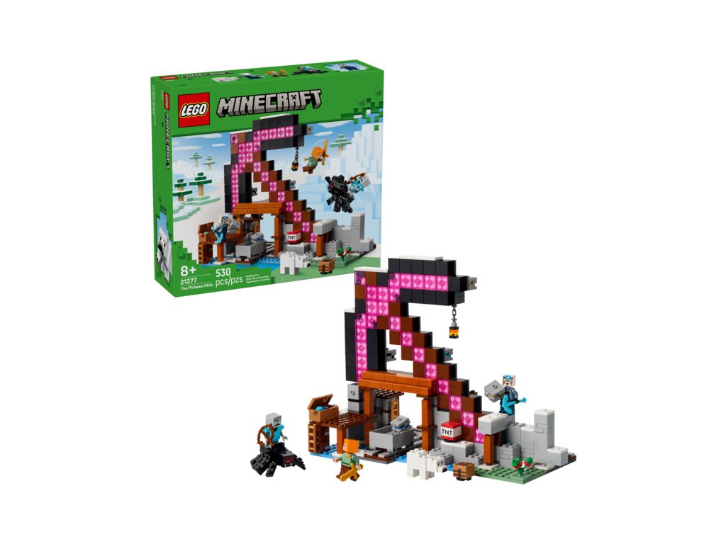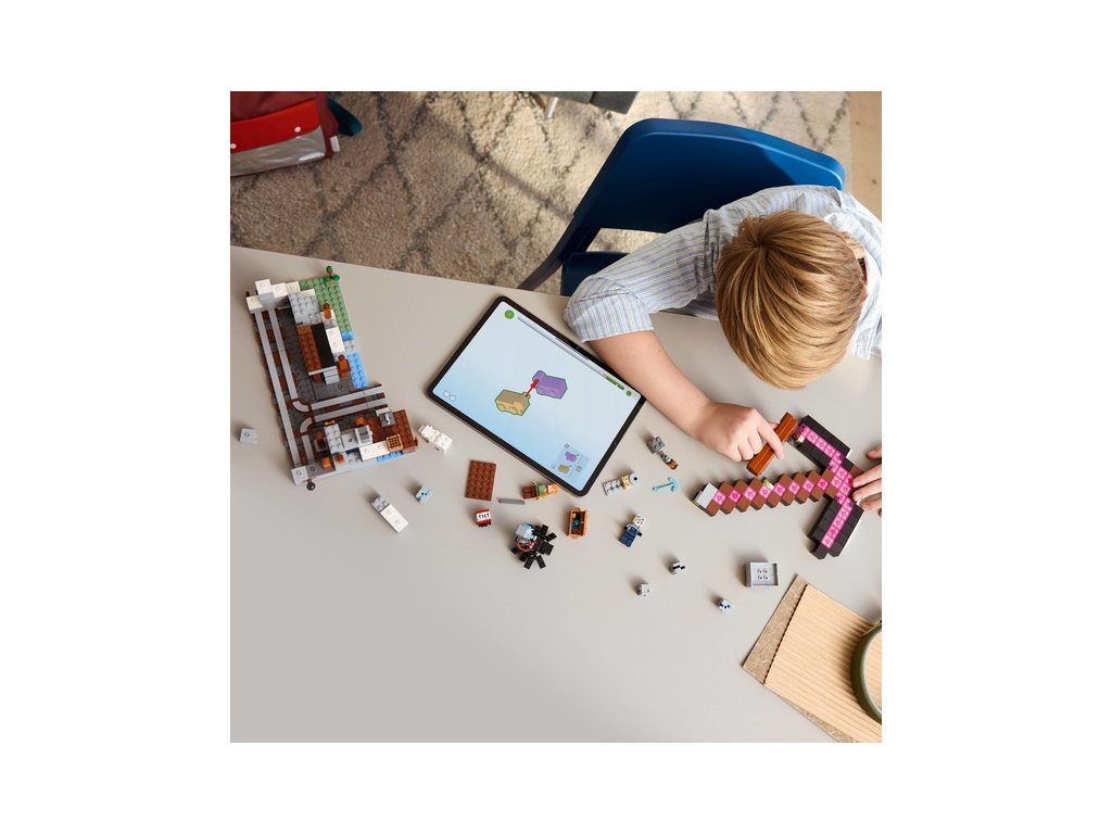 Stavebnice obsahuje 3 minifigurky z Minecraftu: Oblíbenou postavu Alex, horníka a bludného pavoučího jezdce. Na povrchu dolu najdete také figurku mláděte ledního medvěda. Děti vytěží rudu z dolu, naloží ji do důlního vozíku a převezou ji po dráze k truhle, kde ji uloží. Vozík můžou naplnit TNT a vyhodit stranu modelu do povětří. A až si děti dohrají, stavebnice ve tvaru krumpáče LEGO Minecraft se stane úchvatným výstavním kouskem. Pro ještě větší digitální zábavu můžou stavitelé přibližovat a otáčet modely ve 3D a sledovat pokrok pomocí intuitivní aplikace LEGO Builder. Stavebnice obsahuje 530 dílků.