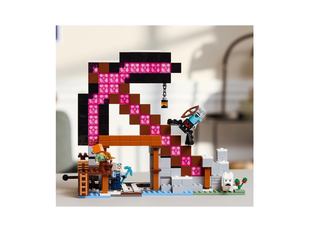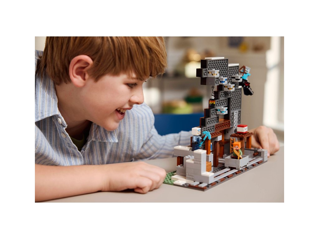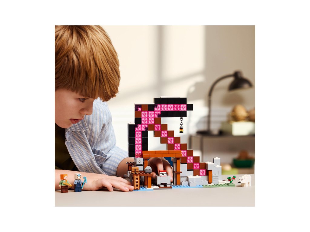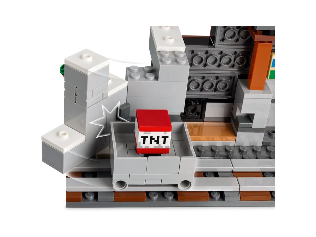 Stavebnice obsahuje 3 minifigurky z Minecraftu: Oblíbenou postavu Alex, horníka a bludného pavoučího jezdce. Na povrchu dolu najdete také figurku mláděte ledního medvěda. Děti vytěží rudu z dolu, naloží ji do důlního vozíku a převezou ji po dráze k truhle, kde ji uloží. Vozík můžou naplnit TNT a vyhodit stranu modelu do povětří. A až si děti dohrají, stavebnice ve tvaru krumpáče LEGO Minecraft se stane úchvatným výstavním kouskem. Pro ještě větší digitální zábavu můžou stavitelé přibližovat a otáčet modely ve 3D a sledovat pokrok pomocí intuitivní aplikace LEGO Builder. Stavebnice obsahuje 530 dílků.