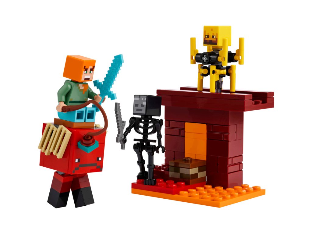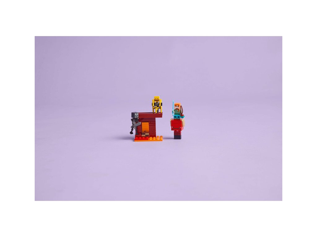 - Stavebnice Minecraft® s řadou aktivit – Obsahuje sestavitelnou částmostu pevnosti v Netheru, figurku LEGO® Minecraft Alex, wither kostlivce, blaze a chodce se zbraněmi a doplňky