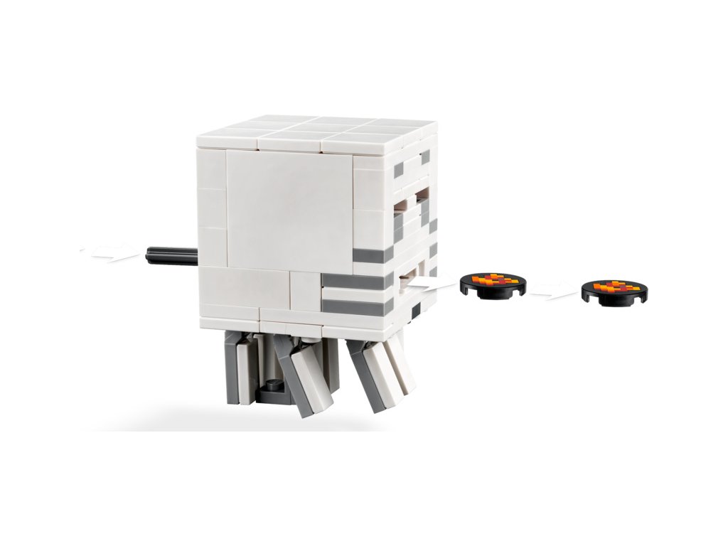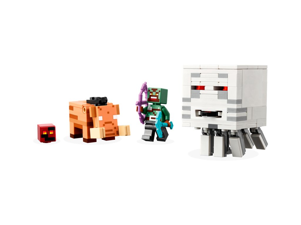 - Akční figurky a bitevní scéna ze světa hry Minecraft® – Součástí stavebnice je figurka skřetího válečníka, ďas, který z tlamy střílí disky, figurka hoglina, který rád útočí nárazy hlavou, a 2 pekelné slizy