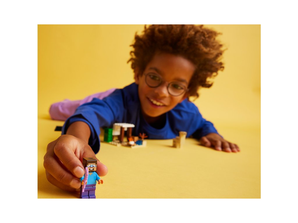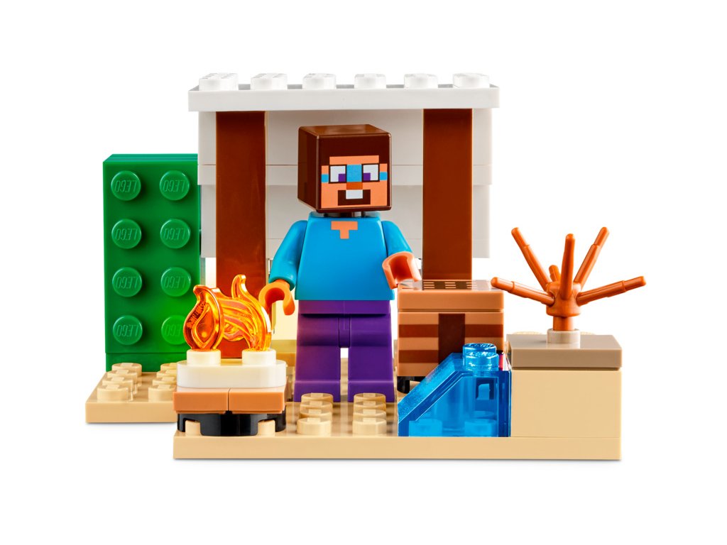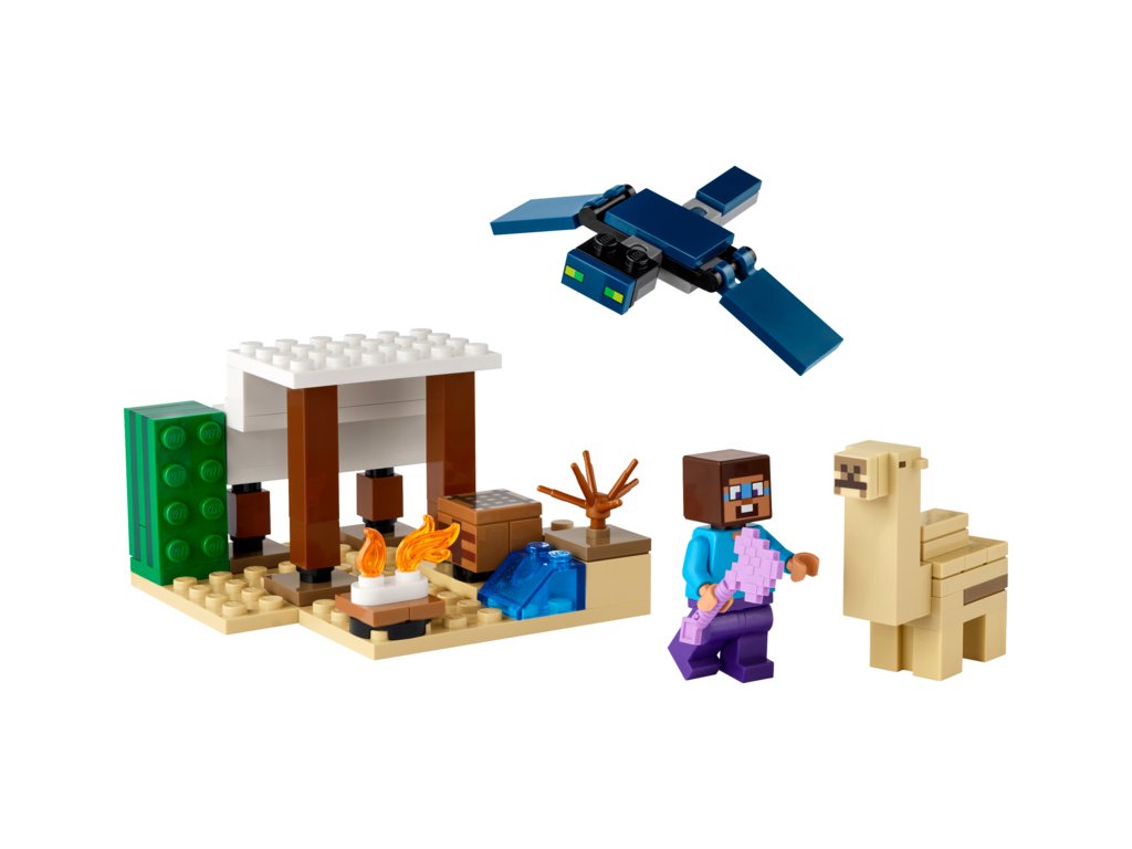 V této přestavitelné herní stavebnici pro děti od 6 let najdete 3 figurky LEGO Minecraft, včetně Stevea, a domek v poušti. Součástí sady jsou také proslulé prvky ze hry Minecraft, jako je pracovní stůl, táborák a řada dílků pro sestavení pouště. Jedná se o skvělý dárek pro fanoušky Minecraftu, který přímo vyzývá k tvořivým dobrodružstvím a akčním bitvám, když základnu napadne létající Přízrak s pohyblivými křídly. Zcela poprvé se ve stavebnici LEGO Minecraft objevuje mládě velblouda a nechybí ani nová verze Steveovy tváře. Sadu lze kombinovat s dalšími stavebnicemi z řady LEGO Minecraft (prodávají se samostatně) a představuje skvělý dárek pro děti i milovníky videoher.