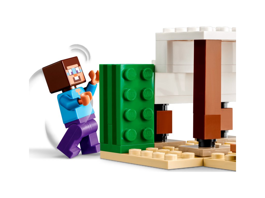 Tento dárek pro milovníky videoher je zcela první stavebnice z řady LEGO® Minecraft® s biomem pouště, ve kterém Steve bojuje s létajícím Přízrakem.