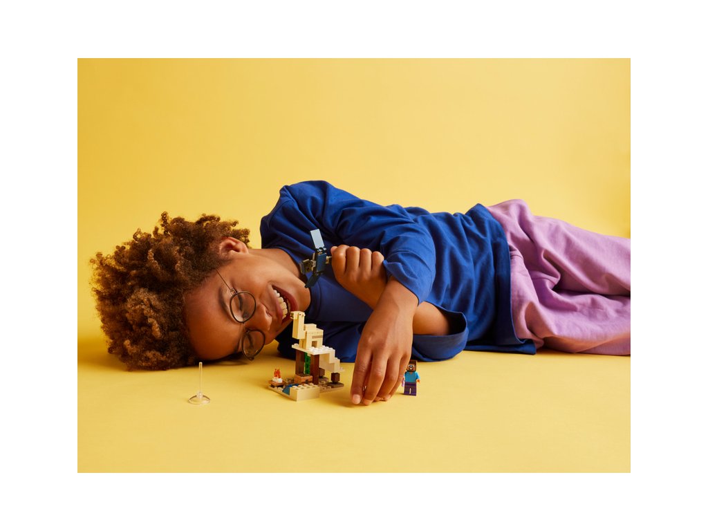 - Hračka s tematikou pouště LEGO® Minecraft® – Vůbec první stavebnice z řady LEGO Minecraft s biomem pouště se stane výzvou pro malé stavitele od 6 let. Postavte dům jako z Minecraftu a ubraňte jej před létajícím Přízrakem