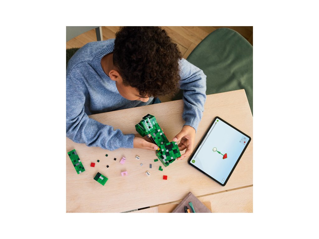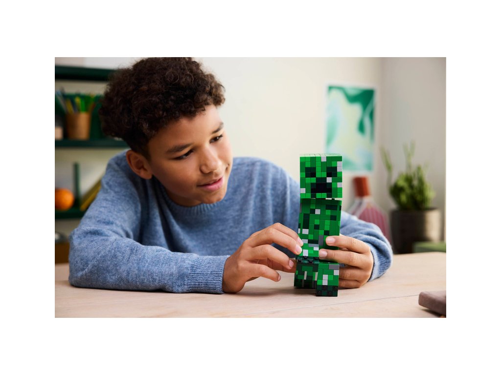 Tato sestavitelná replika Creepera ze světy hry z Minecraft měří přes 21 cm na výšku. Má 4 pohyblivé nohy a hlavu, která se pohybuje ze strany na stranu a naklání se nahoru a dolů. Přední část hlavy figurky LEGO Minecraft Creepera lze oddělit a odhalit vnitřní prostor, který obsahuje první verzi Creepera a dílek TNT. Pro ještě větší digitální zábavu stavitelé můžou přibližovat a otáčet modely ve 3D a sledovat postup pomocí zábavné a intuitivní aplikace LEGO Builder. Stavebnice obsahuje 665 dílků.