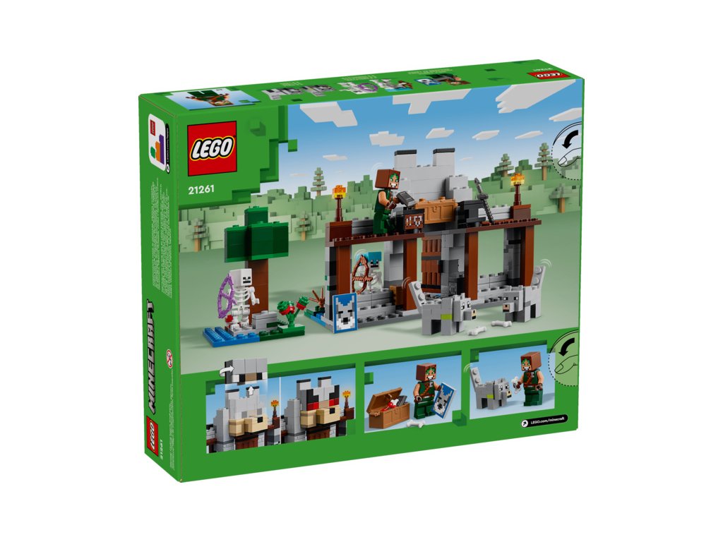 Malí fanoušci akce, dobrodružných stavebnic, modelů pevností a postav ze hry Minecraft® si přímo zamilují stavebnici LEGO® Minecraft (21261) Vlčí pevnost. Tato poutavá hračka pro děti od 8 let inspirovaná videohrou stavitele přenese do světa kreativního stavění, průzkumu a bitevní akce.