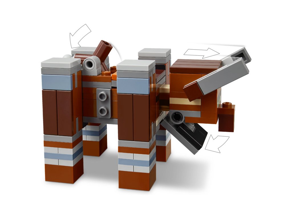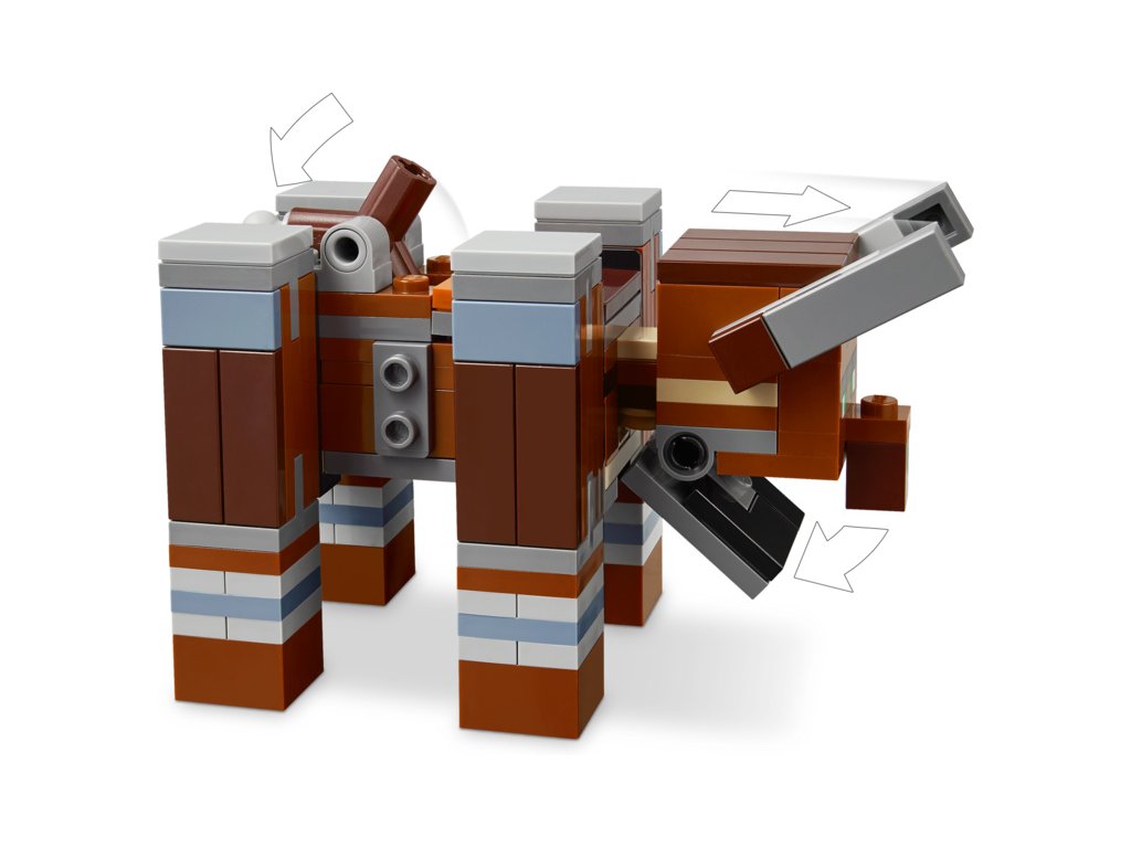 - Pohyblivé figurky – Tato interaktivní stavebnice LEGO® Minecraft® obsahuje minifigurku vesmírného strážce, kapitána nájezdu, vesničana zedníka a mstitele a sestavitelné figurky Ničitele a prasete