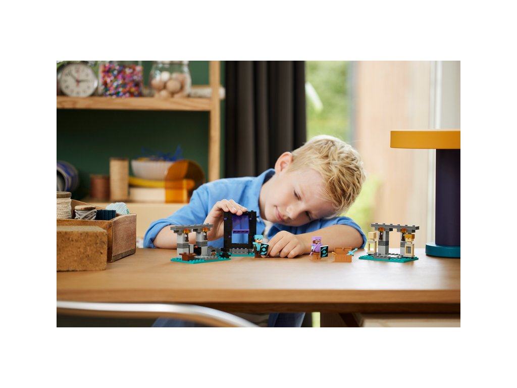 Děti mohou tuto dobrodružnou stavebnici propojit s dalšími sadami z řady LEGO Minecraft, například Přepadení v portálu do Netheru (21255), která se prodává samostatně, a užít si ještě větší porci zábavy.