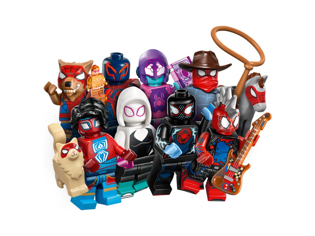 V každé krabičce s překvapením najdete 1 sběratelskou minifigurku ze světa Spider-Mana. Celkem jich můžete nasbírat 12: Miles Morales / Spider-Man, Miguel O'Hara / Spider-Man 2099, Gwen Stacyová / Spider Gwen, Hobie Brown / Spider-Punk, Pavitr Prabhakar / Spider-Man India, Miles G. Morales / Prowler, Peter B. Parker / Spider-Man a May „Mayday“ Parkerová, Margo Kessová / Spider-Byte, Peter Parker / Werewolf Spider-Man, Patrick O'Hara / Web-Slinger, Petra Parkerová / Cyborg Spider-Woman a Charlotte Webberová / Sun-Spider.