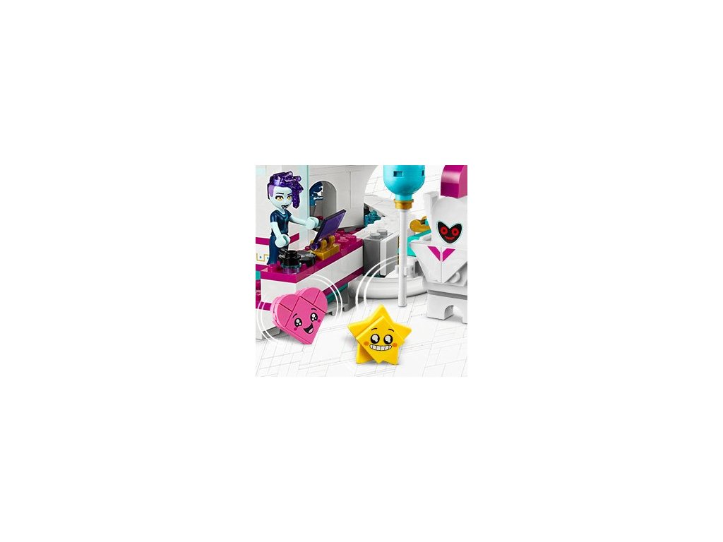 Přidej se na večeři ke starému mládenci Batmanovi a královně Libovůli v královnině hrůzostrašném LEGO® vesmírném paláci s touto zábavnou stavebnicí! Vychutnej si smoothie a prohlédni si mixážní pult. Seznam se s dalšími barevnými postavami z filmu LEGO PŘÍBĚH 2, jako je zmrzlinový kornout, a vystřel do vesmíru Hvězdu a Srdce v jejich modulech. Pak roztoč horní část paláce, zatímco královna Libovůle vzlétne ve své super vesmírné raketě!