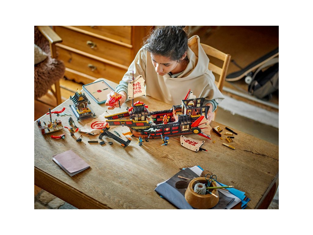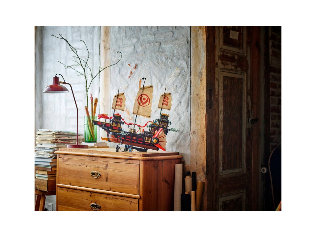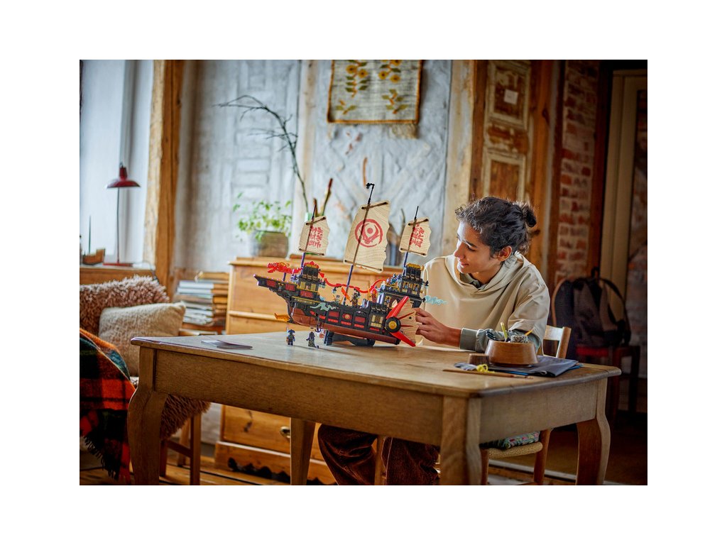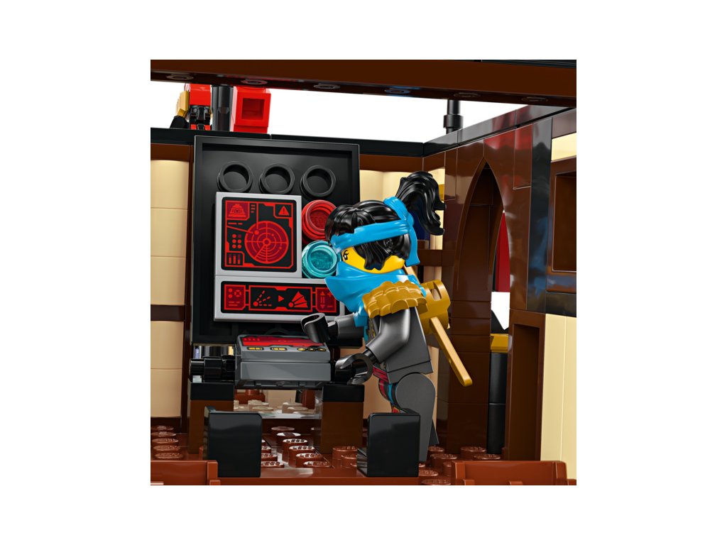 - Interaktivní stavebnice lodi – Fanoušci NINJAGO® můžou otáčet ozubeným kolem, pohybovat plachtami, odstraňovat střechy a podlahy, aby získali přístup do interiéru a sushi baru, složit stůl v hlavní kajutě a odhalovat tajemství