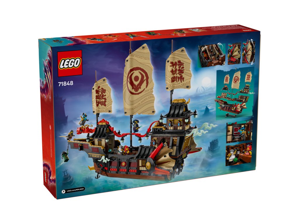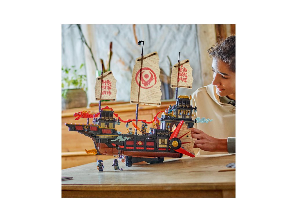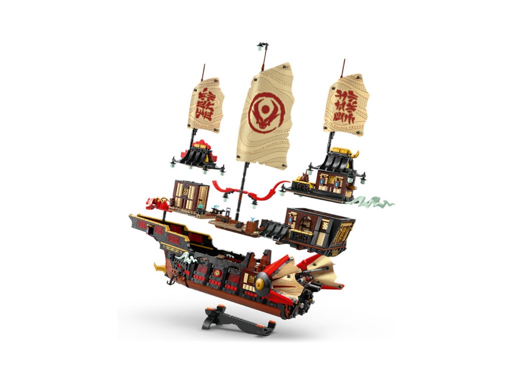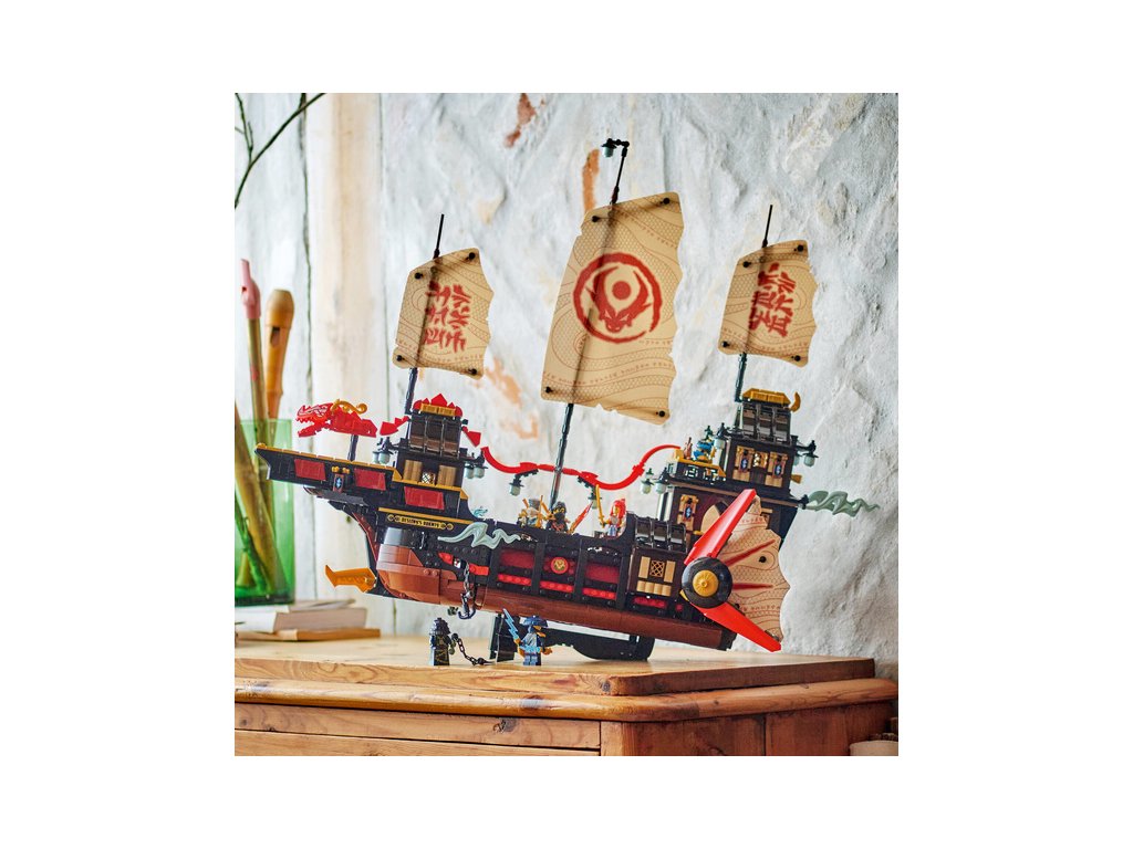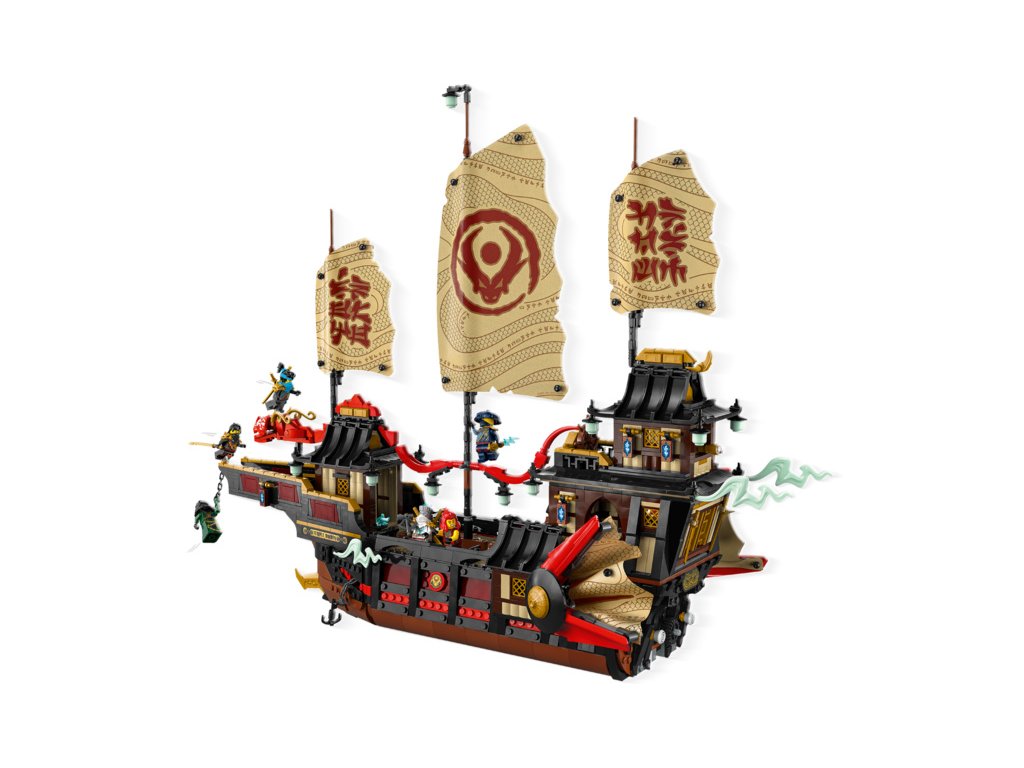 Tato interaktivní dobrodružná stavebnice obsahuje vše, co fanoušci nindžů potřebují k tomu, aby si připomněli příběhy z 3. řady televizního seriálu NINJAGO Dračí povstání: ozubené kolo pro otevírání a zavírání plachet, odnímatelné střechy a podlahy pro přístup do interiéru lodi se sushi barem a stolem v hlavní kajutě, který lze sklopit a odhalit tak tajný počítač.