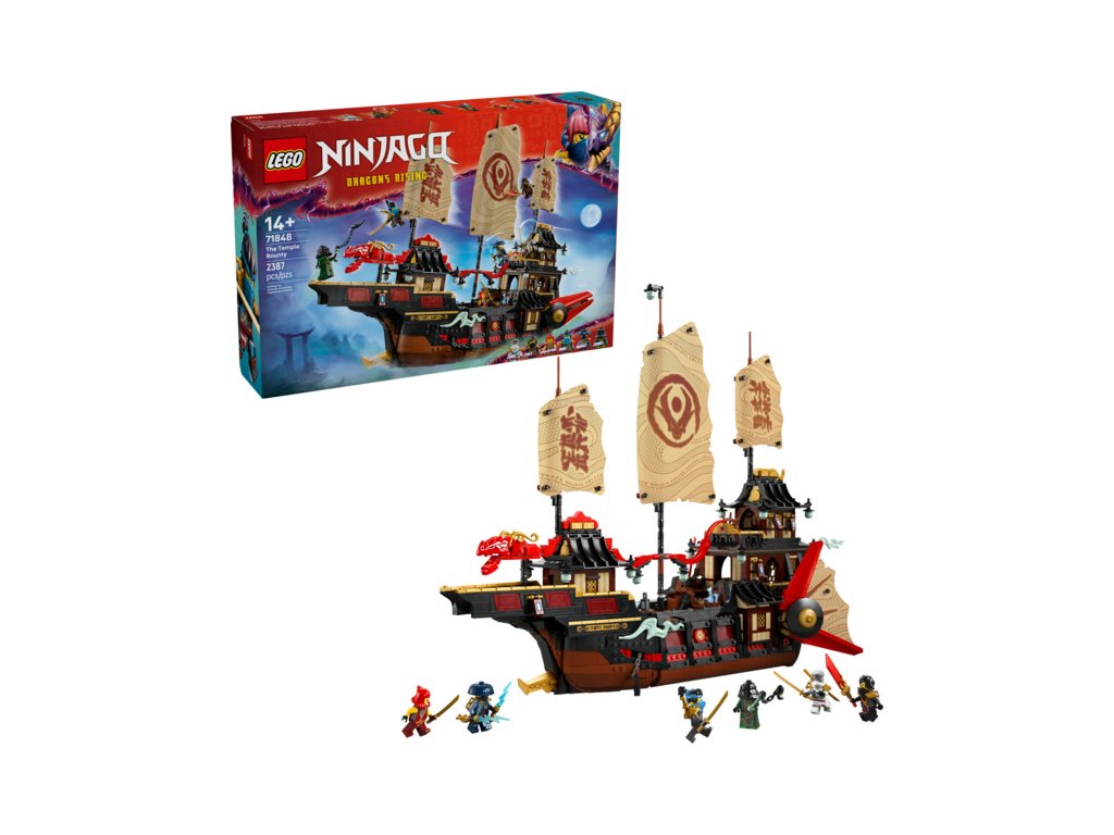 Starší fanoušci NINJAGO® od 14 let čeká úžasný model lodi do sbírky: LEGO® NINJAGO (71848) Chrámová Odměna. Tento velký a propracovaný model lodi je nejnovějším přírůstkem do řady slavných lodí NINJAGO a je plný skvělých detailů a funkcí. Součástí je také podstavec na vystavení, takže fanoušci můžou model snadno vystavit na polici nebo třeba na nočním stolku.