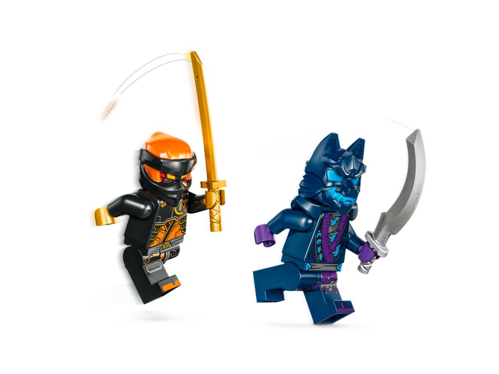 Součástí této hračky s nindžovskou tematikou jsou 2 minifigurky, Cole s katanou a válečník s vlčí maskou s mečem, se kterými na děti čekají akční nindžovské příběhy. Stavebnici lze postavit s pomocí aplikace LEGO® Builder, která vás a vaše dítě provede snadným a intuitivním stavitelským dobrodružstvím.