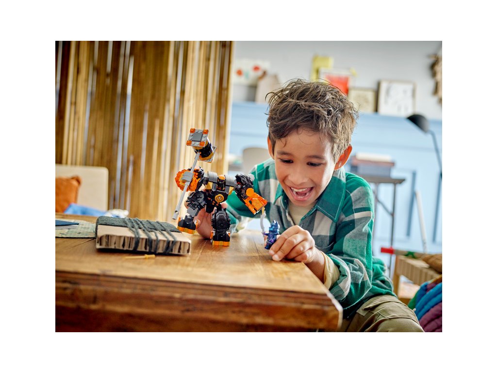 Se stavebnicí Coleův živelný zemský robot děti od 7 let znovu prožijí své oblíbené příběhy z 2. řady seriálu NINJAGO® Dračí povstání. Parádní robot má pohyblivé paže a nohy.