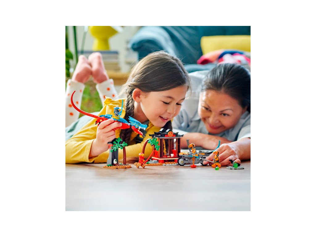 Stavebnice Dračí chrám nindžů pomůže dětem s rozvojem stavitelských dovedností. Zaujme pohyblivým drakem, 2 chrámy nindžů, 2 pohyblivými stromy, dračím vejcem a 4 minifigurkami.