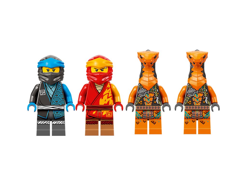 - 4 minifigurky – Součástí jsou nindžové Kai a Nya, prohnaný had na motorce a kobří mechanik s kopím a katapultem. Malým stavitelům tak nic nebrání vrhnout se do světa plného dobrodružství