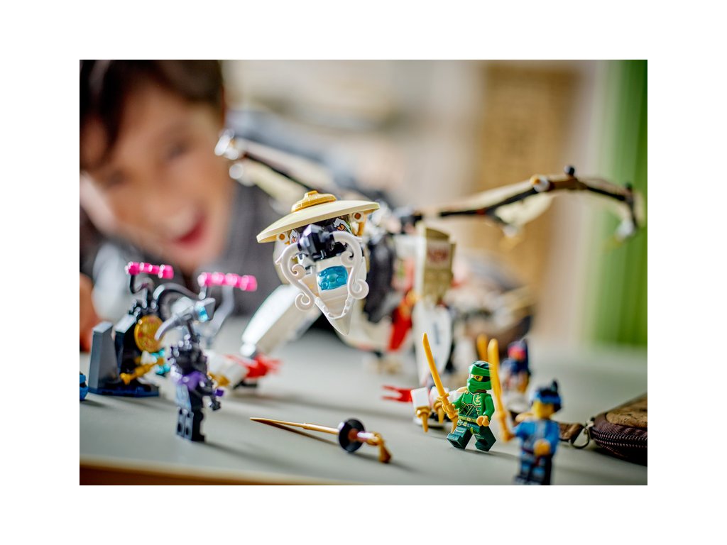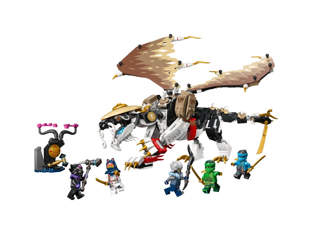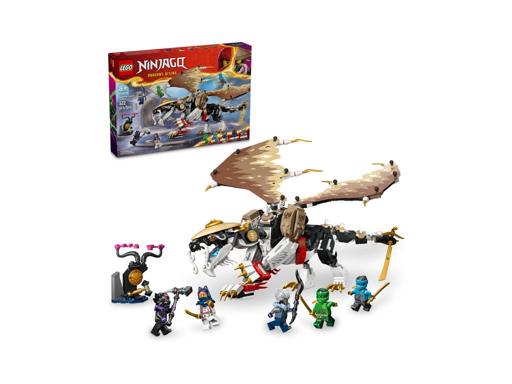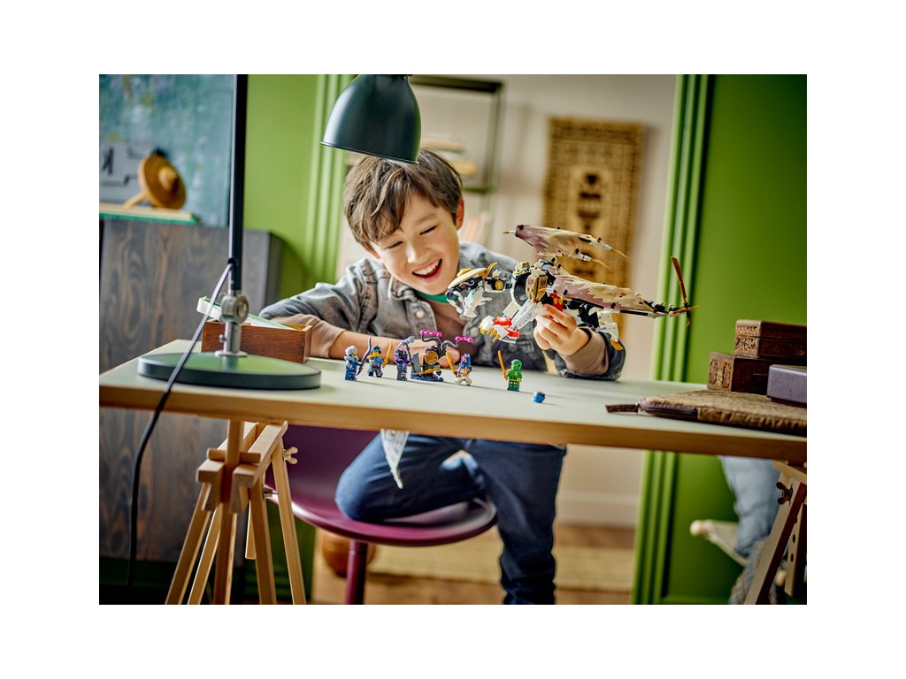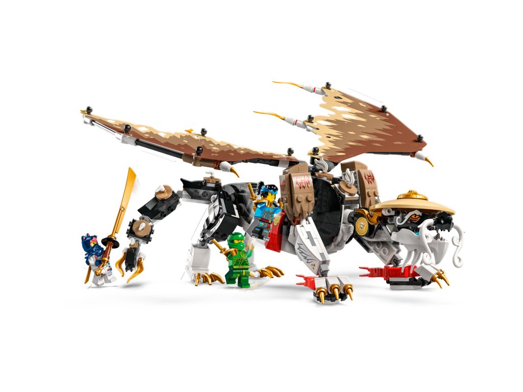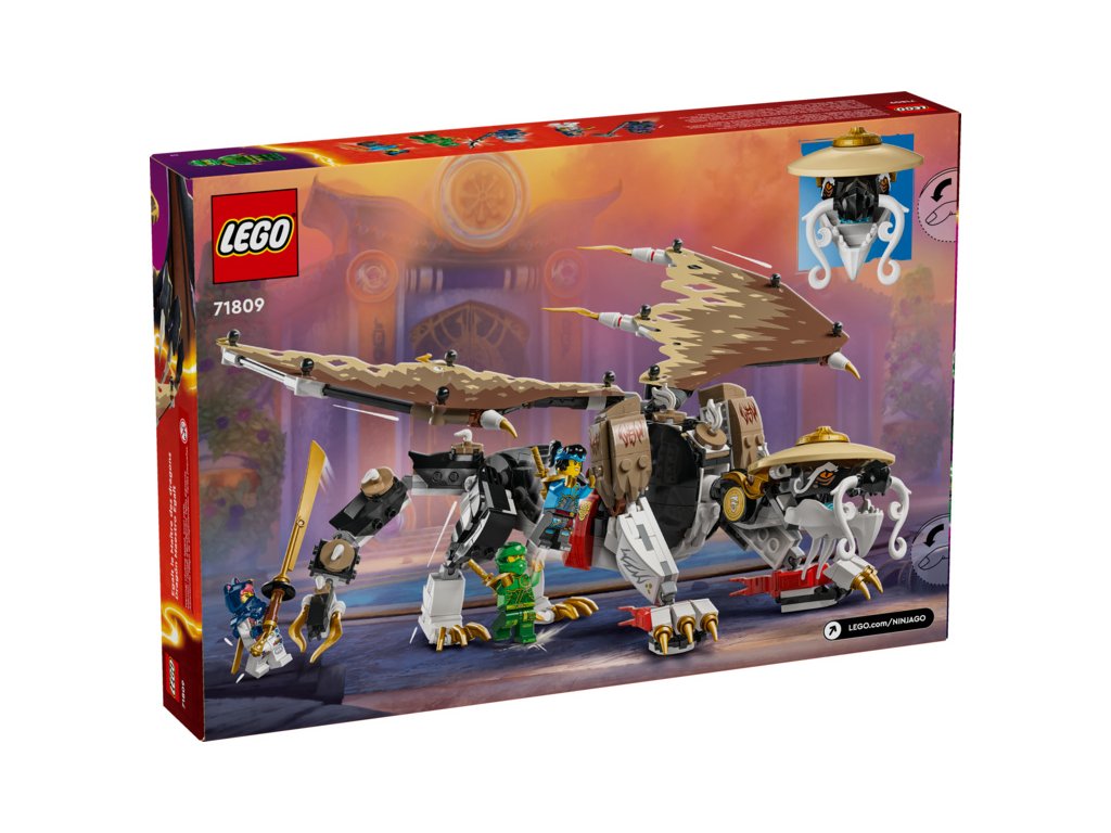 Děti od 8 let si se stavebnicí LEGO® NINJAGO® (71809) Egalt – Pán draků připomenou strhující dobrodružství z 2. řady televizního seriálu NINJAGO® Dračí povstání. Jedná se o vůbec první stavebnici s Pánem draků v řadě NINJAGO a má pohyblivé nohy, ocas a fóliová křídla, vlastní meč a na zádech držák na katanu.