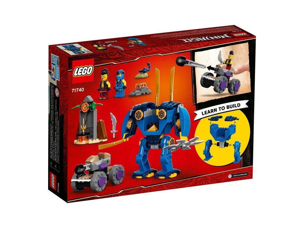 - Se stavebnicí LEGO® NINJAGO® Jayův elektrorobot (71740) se děti naučí stavět a prožijí spoustu zábavy s pohyblivým modelem robota a nindžovským vozidlem.
