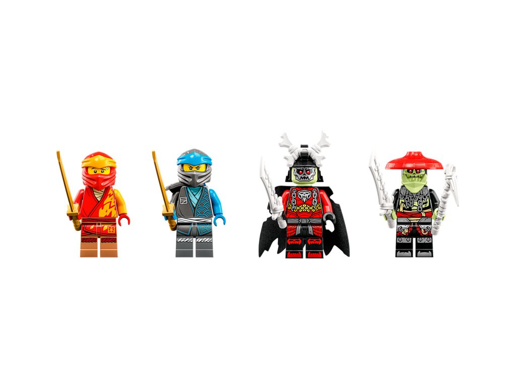 - 4 minifigurky – Stavebnice obsahuje 2 nindža bojovníky, Kaie a Nyu, s meči a 2 padouchy, Kostlivého krále a Kostlivého lovce, kteří jsou také po zuby vyzbrojení