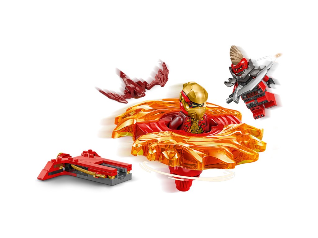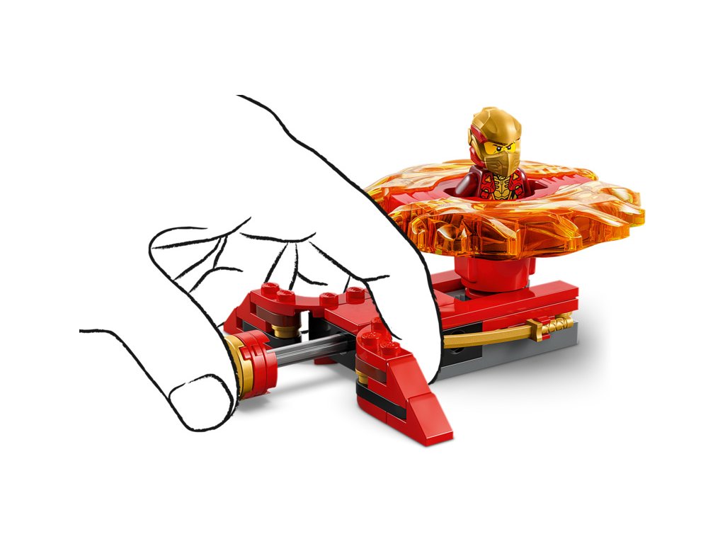 - Rychlý spinner – Stisknutím tlačítka na vystřelovači vypusťte Kaiův dračí Spinjitzu spinner a sledujte, jestli po zasažení cíle odletí 2 dílky síly