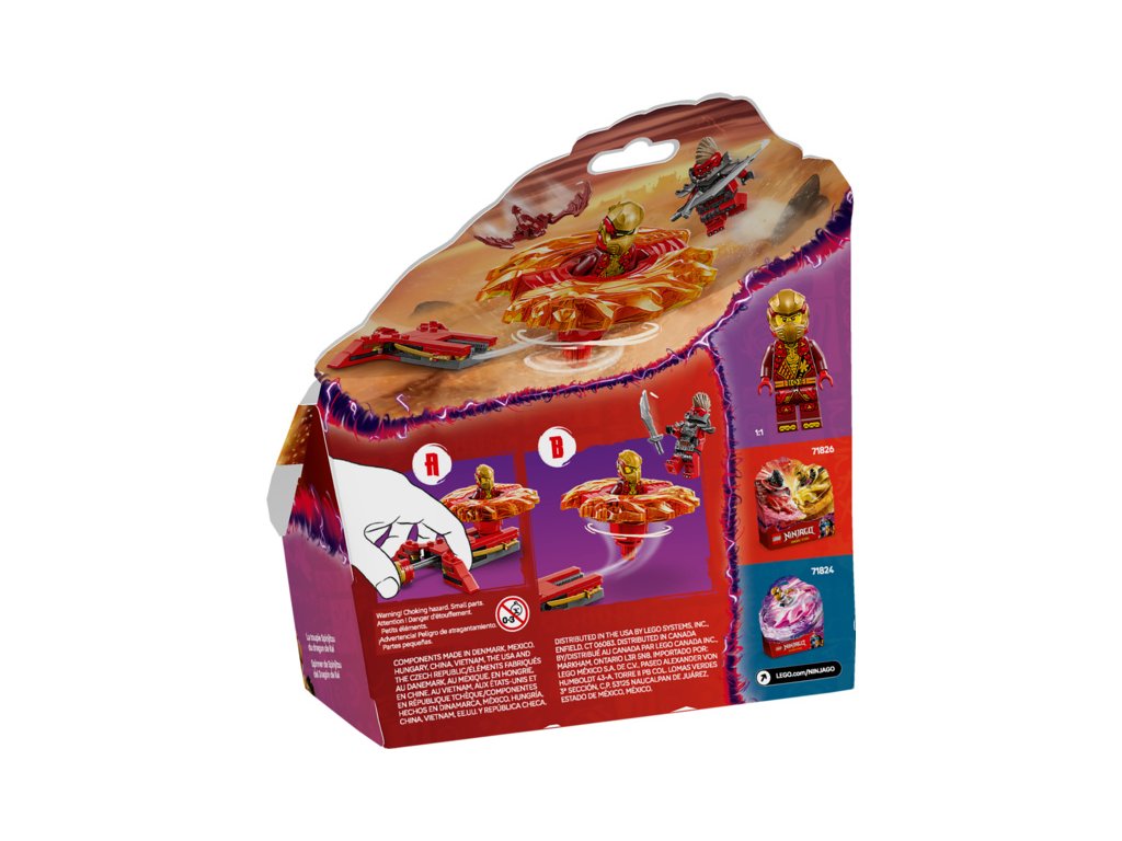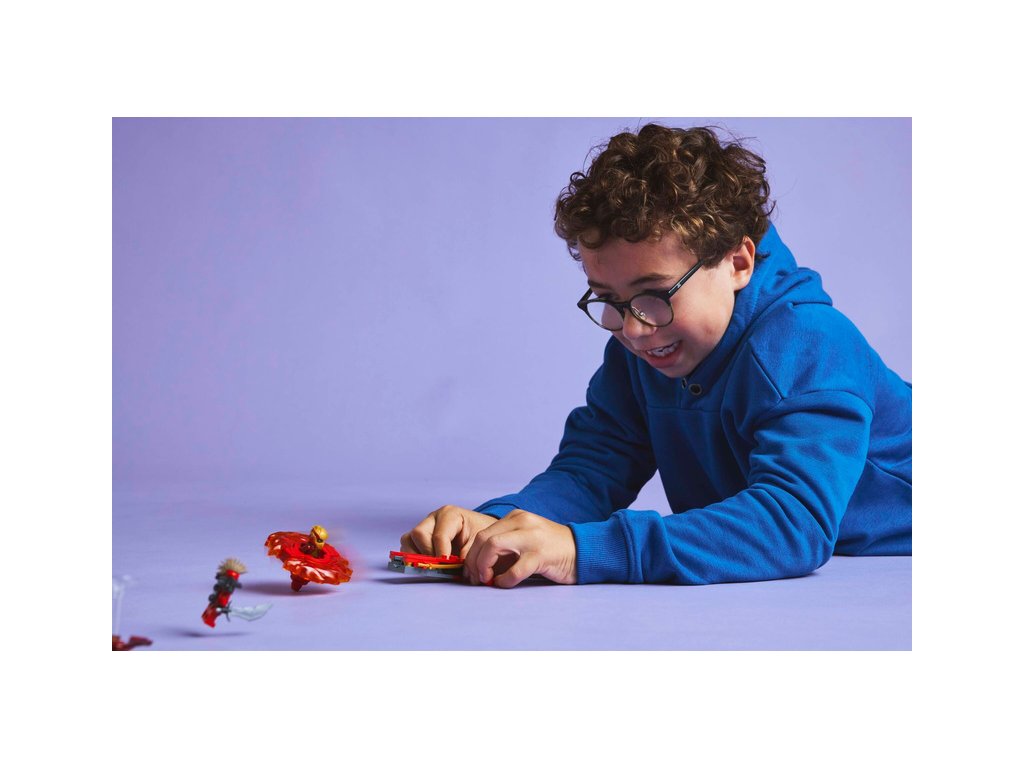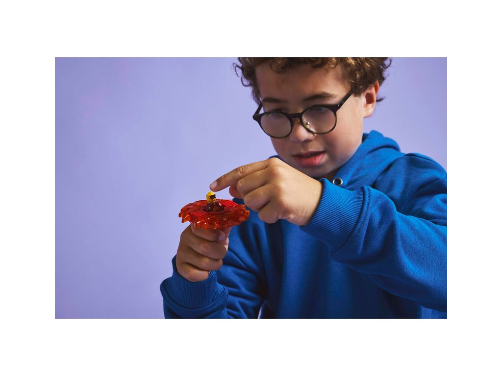 S akční stavebnicí Kaiův dračí Spinjitzu spinner (71823) si kluci a holky od 6 let připomenou napínavé scény z 3. řady televizního seriálu NINJAGO® Dračí povstání. Děti si s nadšením postaví tuto malou stavebnici LEGO® a stisknutím tlačítka odpalovače vypustí Kaiův dračí Spinjitzu spinner, který se roztočí, a budou sledovat, jestli 2 prvky síly odletí, když spinner zasáhne svůj cíl.