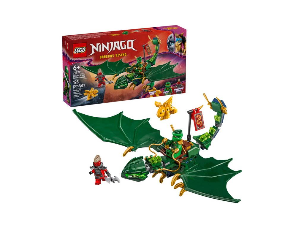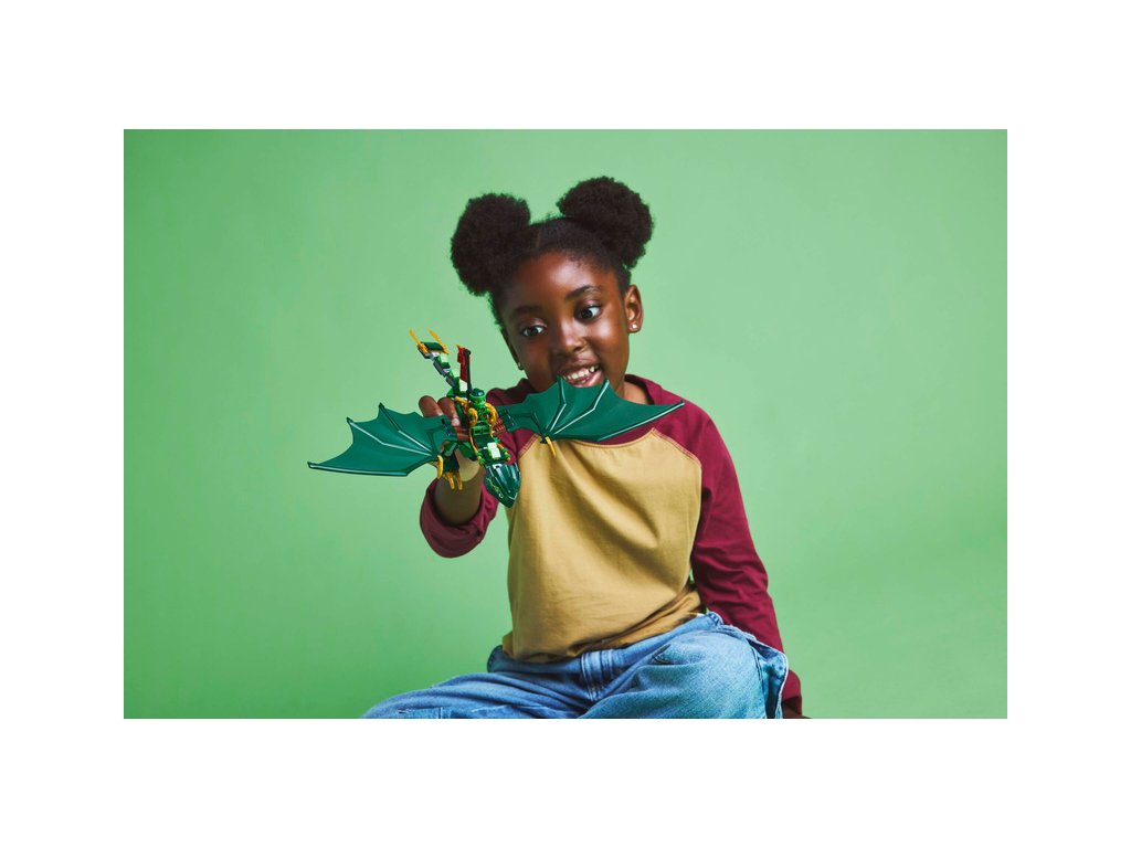 - Hračka s drakem pro děti – Děti od 6 let si se sestavitelným drakem ze stavebnice Lloydův zelený lesní drak připomenou scény v oblacích z 3. řady televizního seriálu NINJAGO® Dračí povstání