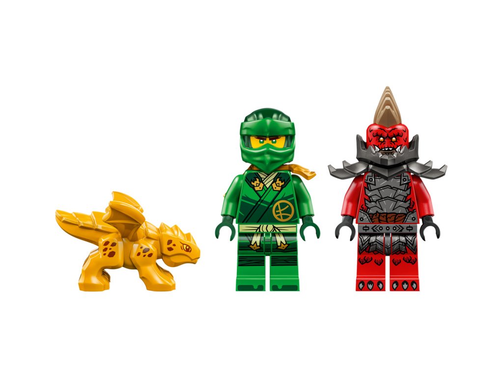 - 2 minifigurky – Lloyd je vyzbrojený zlatou katanou a zlotřilý dračí válečný zvěd má sekeru a děti si užijí ještě větší porci akčního hraní
