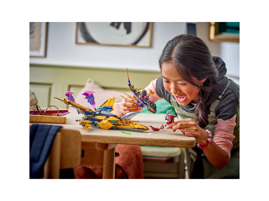- Hračka s letadlem pro děti – Děti od 8 let si s dobrodružnou stavebnicí Ras, Arin a superbouřkové letadlo připomenou vzdušnou akci z 3. řady televizního seriálu NINJAGO® Dračí povstání