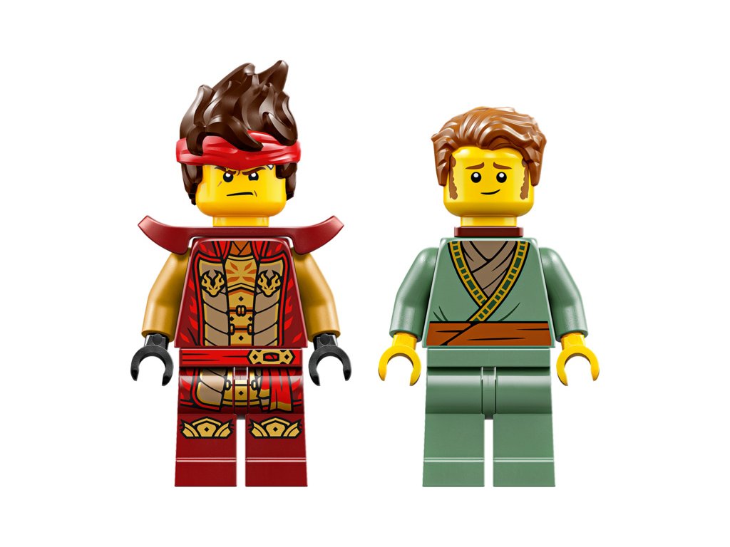 - 2 minifigurky NINJAGO® – Součástí modelu je také nindža Kai s čepelí, kterého lze usadit do hrudi robota, a rybář v loďce s pádlem, kteří inspirují k dalšímu vyprávění