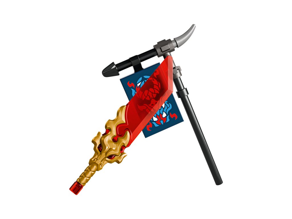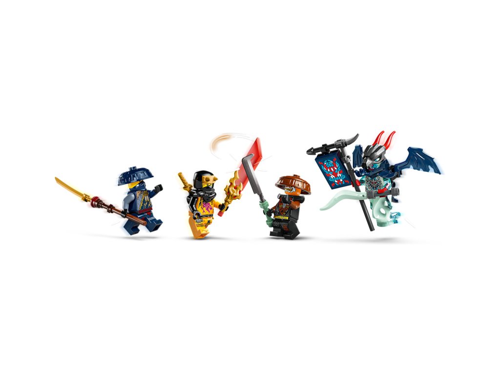 - 4 minifigurky – Rogue, Arin a dvojice padouchů Rox a Přízračný dračí bojovník, kteří mají prapor s tajnou zprávou, kterou lze přečíst pouze pomocí Arinovy odhalující čepele
