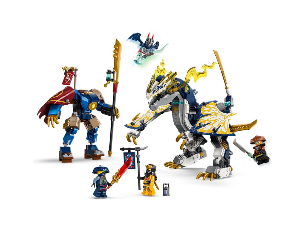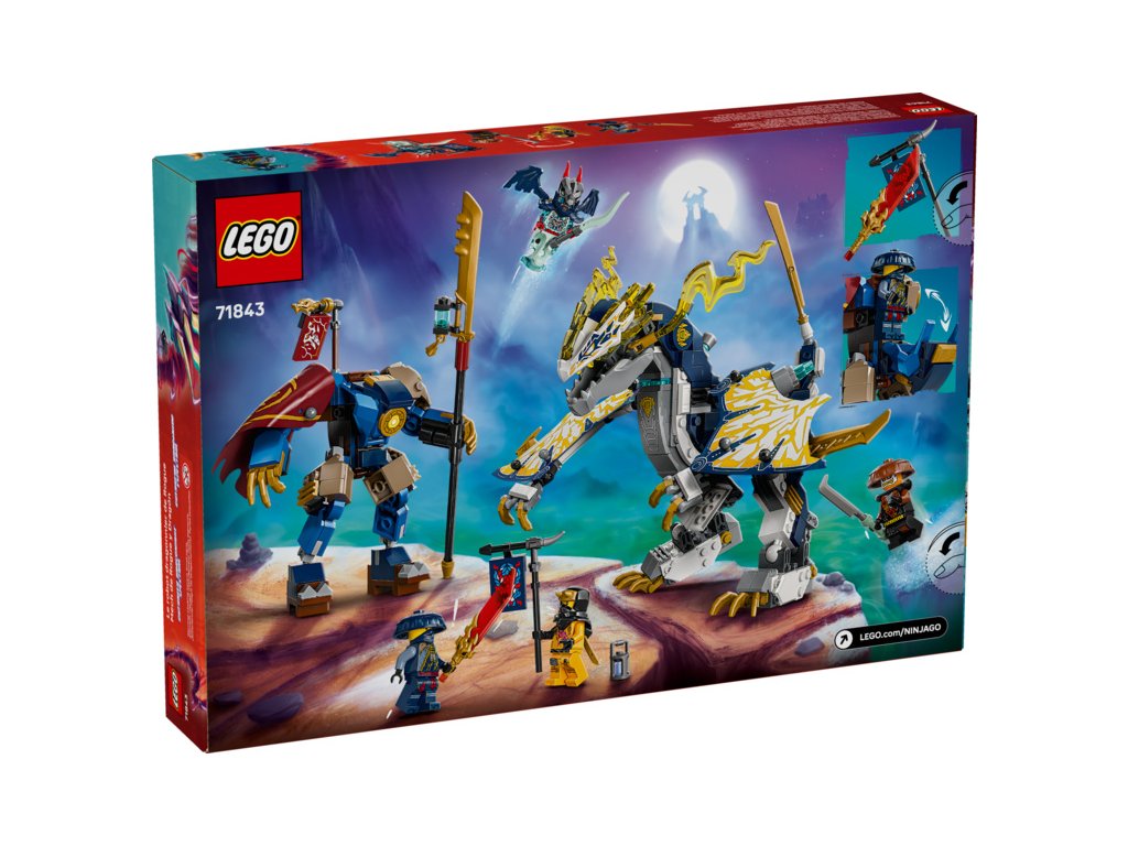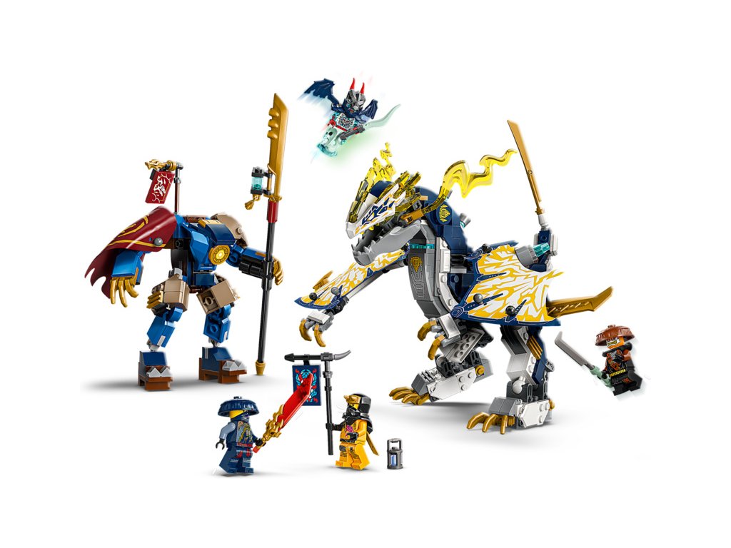 - Model robota a draka – Děti si můžou s modely hrát samostatně nebo připevnit pohyblivého robota na záda vůbec prvního robotického draka NINJAGO® a vytvořit tak Roguea a robotického dračího jezdce