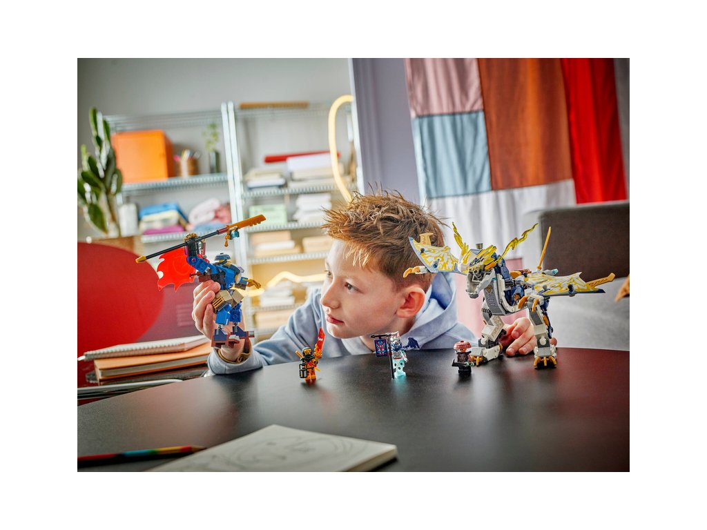 Děti můžou na zadní stranu figurky draka z této stavebnice připevnit roboty ze stavebnic Kaiův bouřný jezdec a robot (71830) a Kaiova robomotorka EVO (71783) (prodávají se samostatně). Tuto stavebnici lze také postavit s pomocí aplikace LEGO® Builder, která vás a vaše dítě provede stavitelským dobrodružstvím. Stavebnice obsahuje 584 dílků.