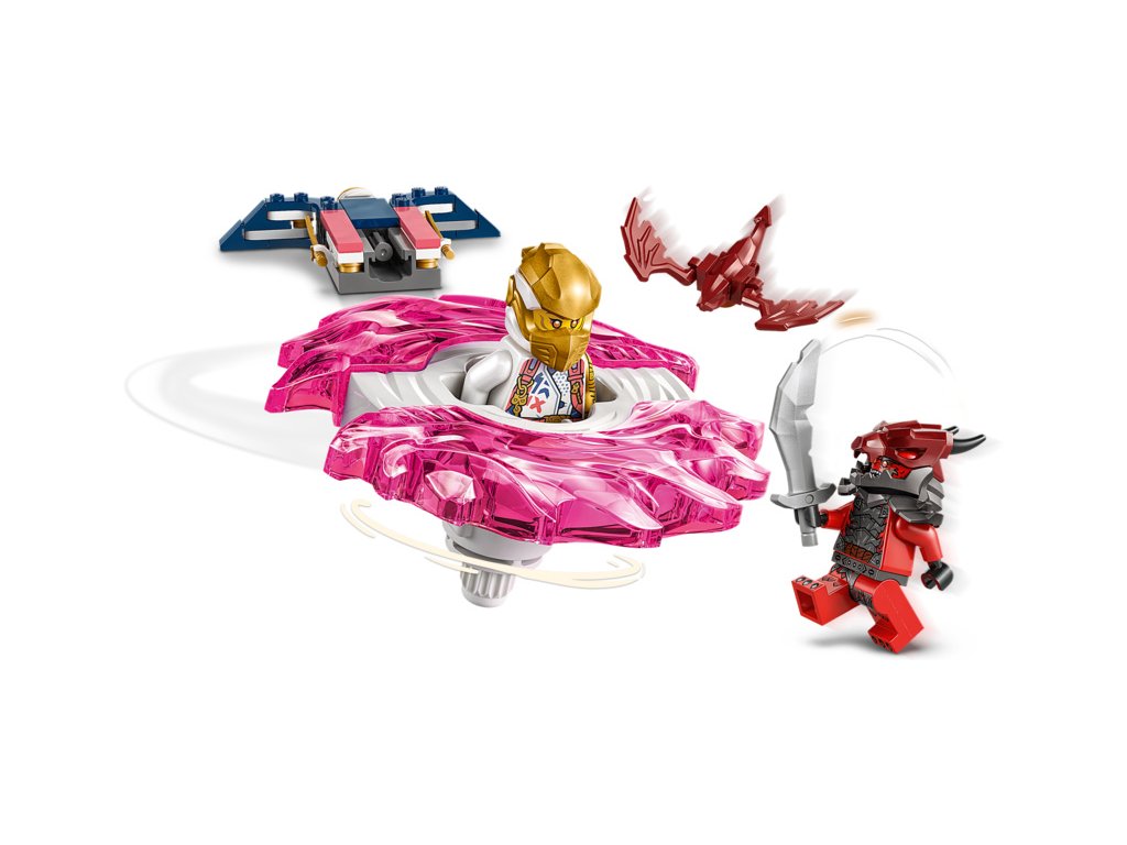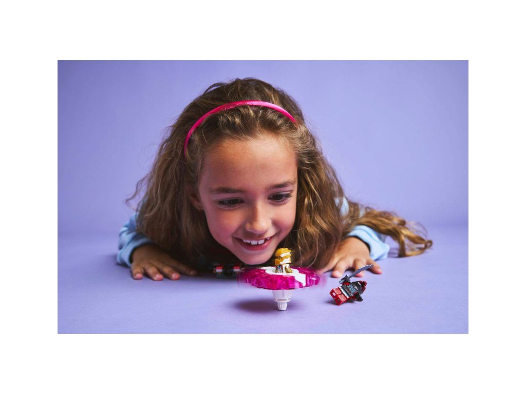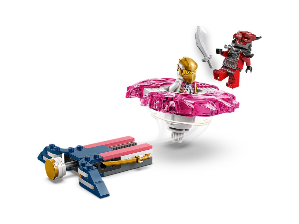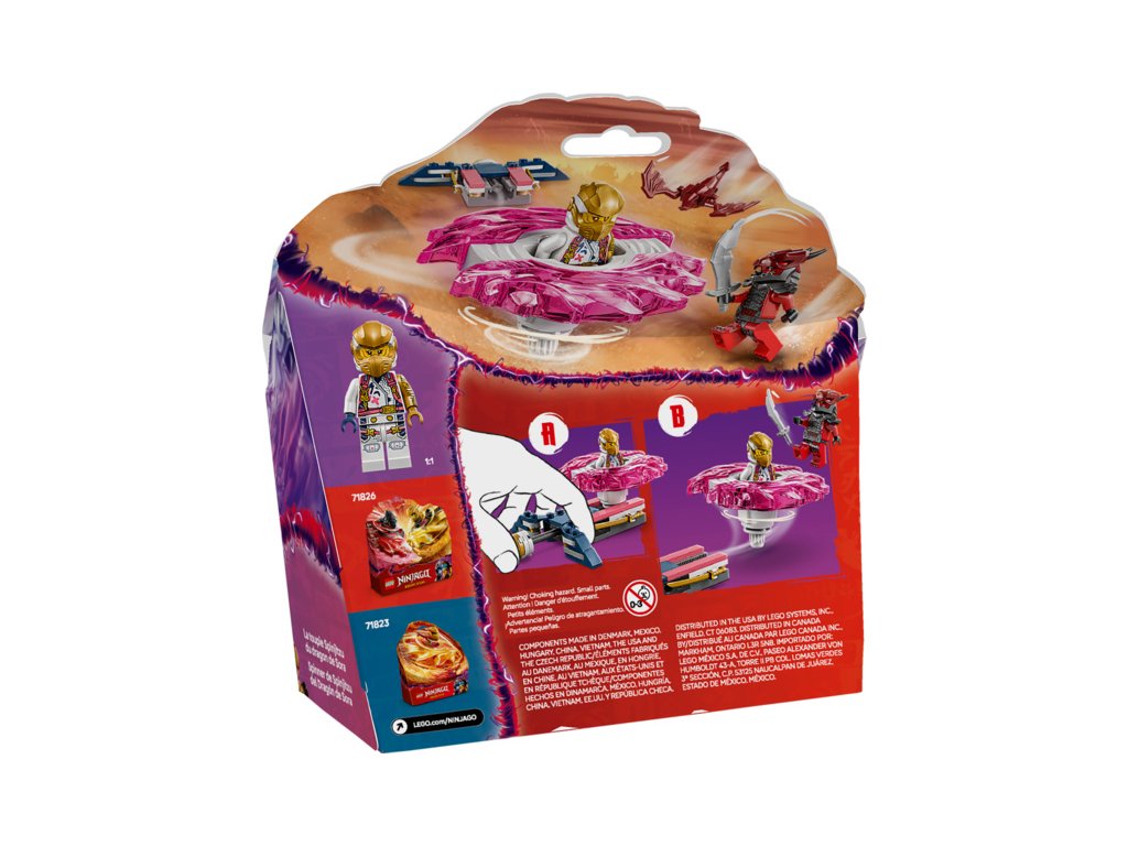 S akční stavebnicí Sorin dračí Spinjitzu spinner (71824) si kluci a holky od 6 let připomenou strhující scény z 3. řady televizního seriálu NINJAGO® Dračí povstání. Děti si s nadšením postaví tuto malou stavebnici LEGO® a stisknutím tlačítka odpalovače vypustí Sorin dračí Spinjitzu spinner, který se roztočí, a budou sledovat, jestli 2 prvky síly odletí, když spinner zasáhne svůj cíl.