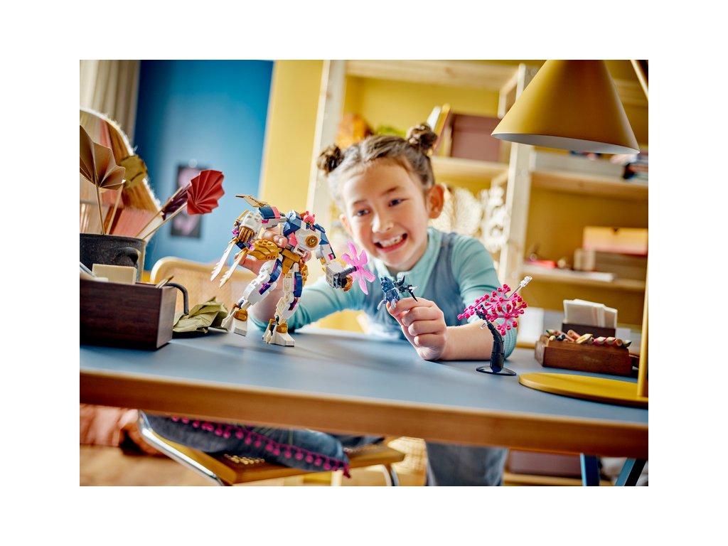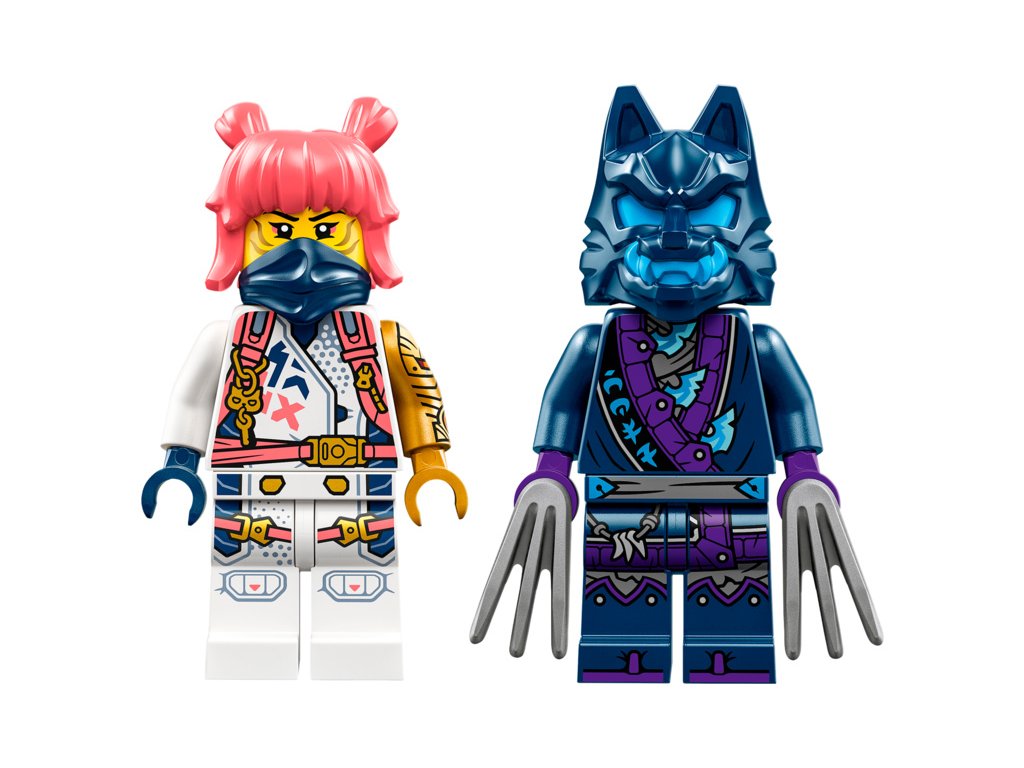Součástí této hračky s nindžovskou tematikou jsou 2 minifigurky, Sora se 2 katanami a válečník s drápem a vlčí maskou, se kterými děti zažijí akční nindžovské příběhy. Stavebnici lze postavit s pomocí aplikace LEGO® Builder, která vás a vaše dítě provede snadným a intuitivním stavitelským dobrodružstvím.