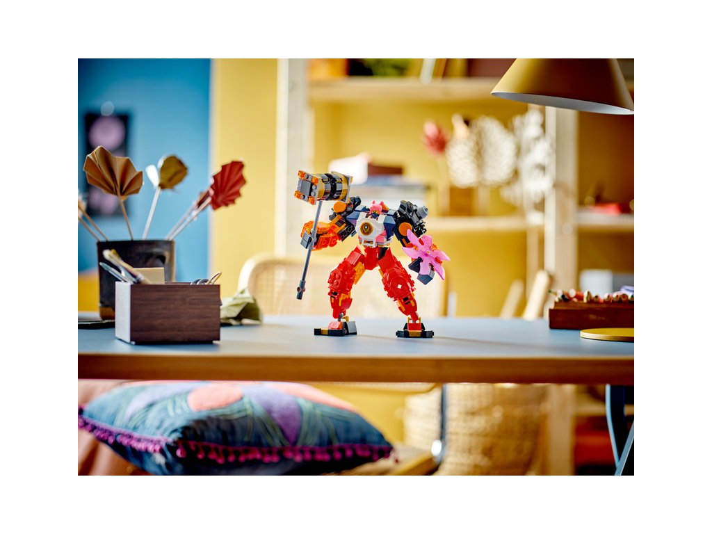 S tímto zbrusu novým přizpůsobitelným robotem si děti postaví model podle vlastní fantazie! Díky odnímatelným nohám, pažím a trupu ho můžete zkombinovat se 2 dalšími roboty: Coleovým živelným zemským robotem (71806) a Kaiovým živelným ohnivým robotem (71808) (prodávají se samostatně). Děti si užijí hodiny zábavného skládání a vytvoří vlastní jedinečnou akční figurku.