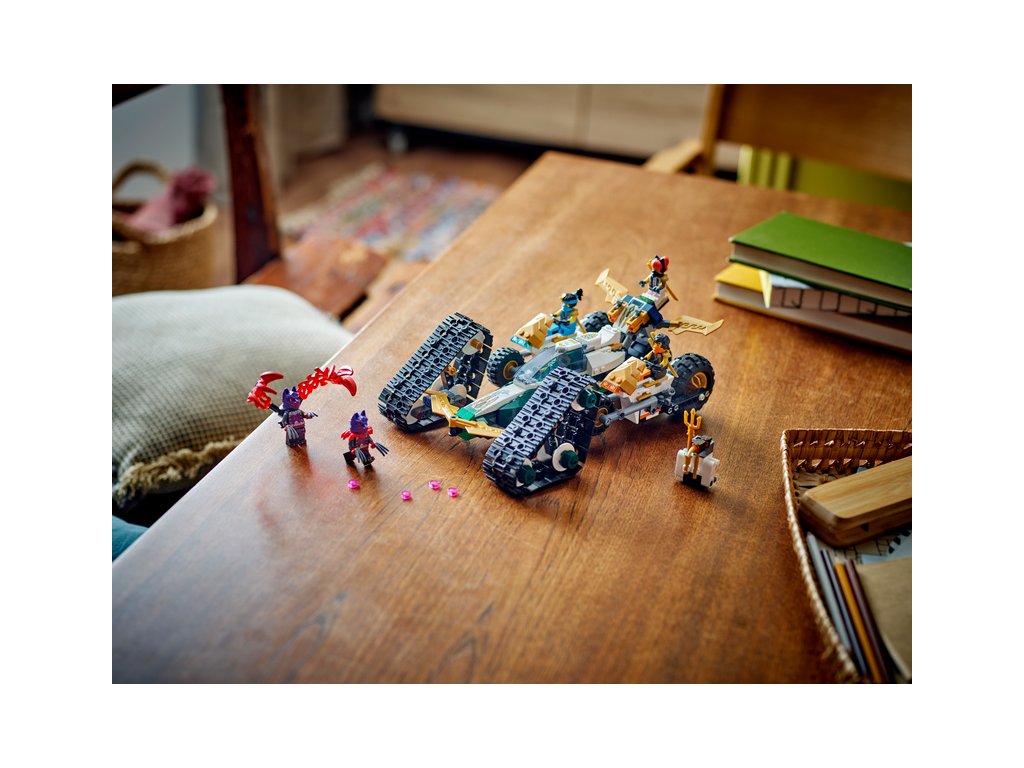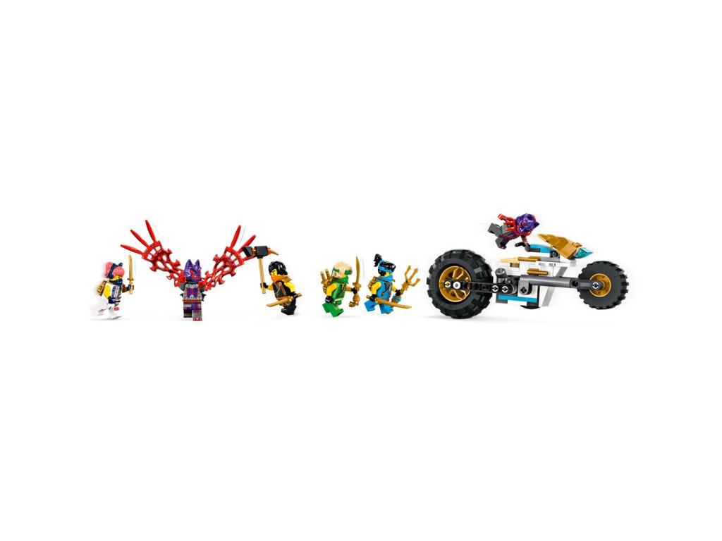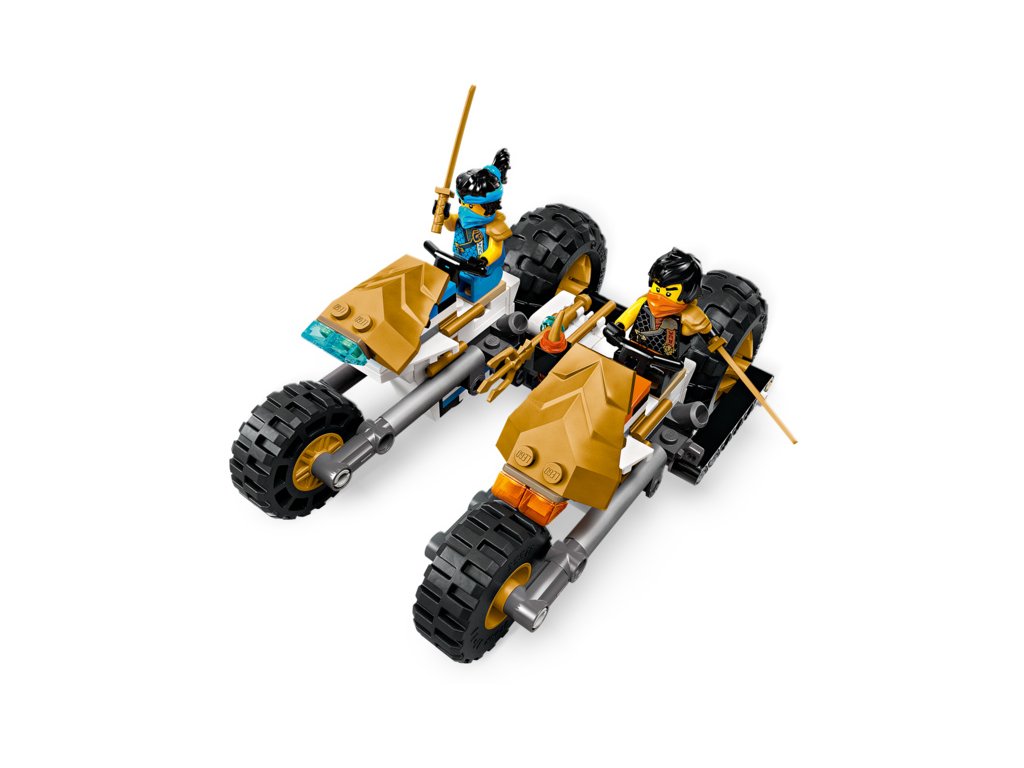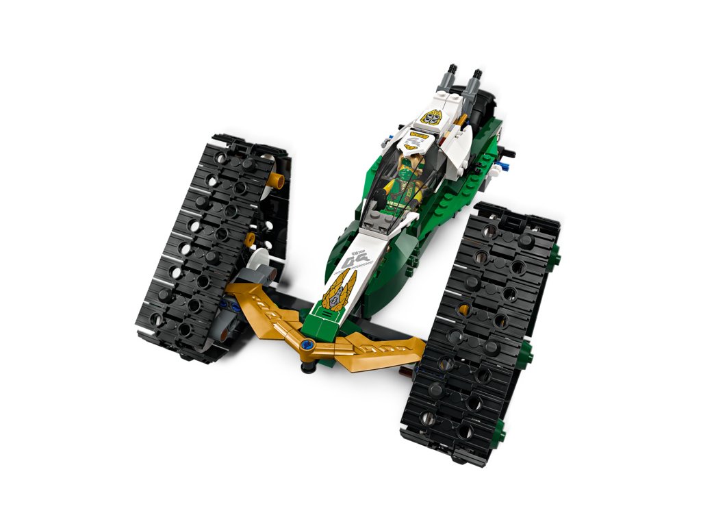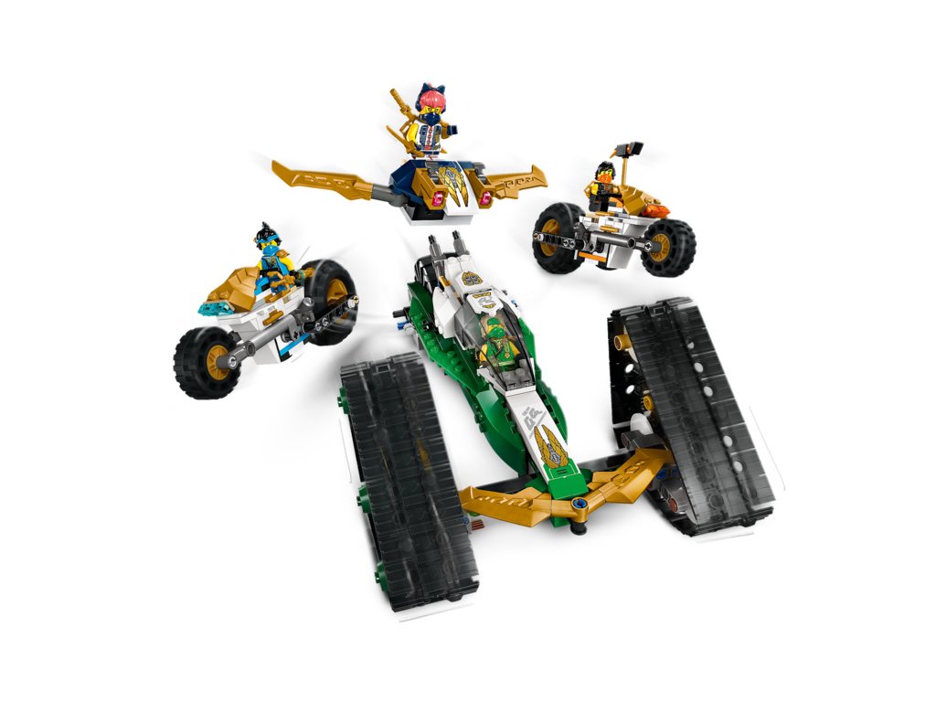 - Odnímatelná nindžovská vozidla – Velké vozidlo NINJAGO® lze rozdělit na 4 menší vozidla: Sorin kluzák se 2 vystřelovači, Lloydův terénní závoďák a motorky Colea a Nyi