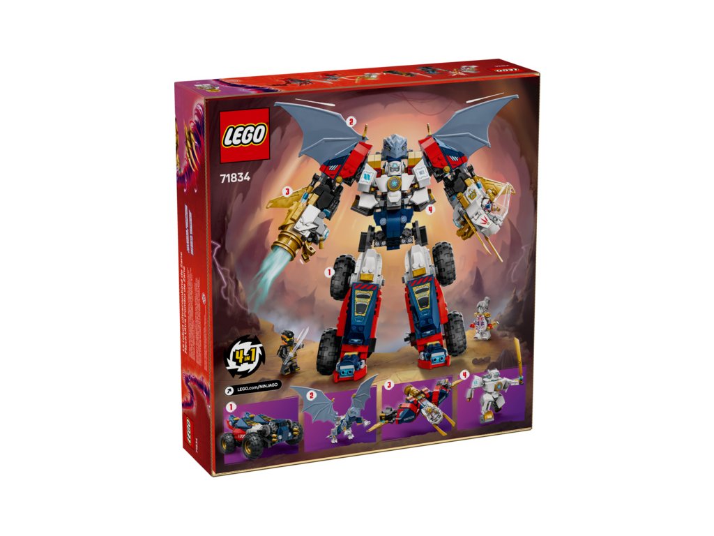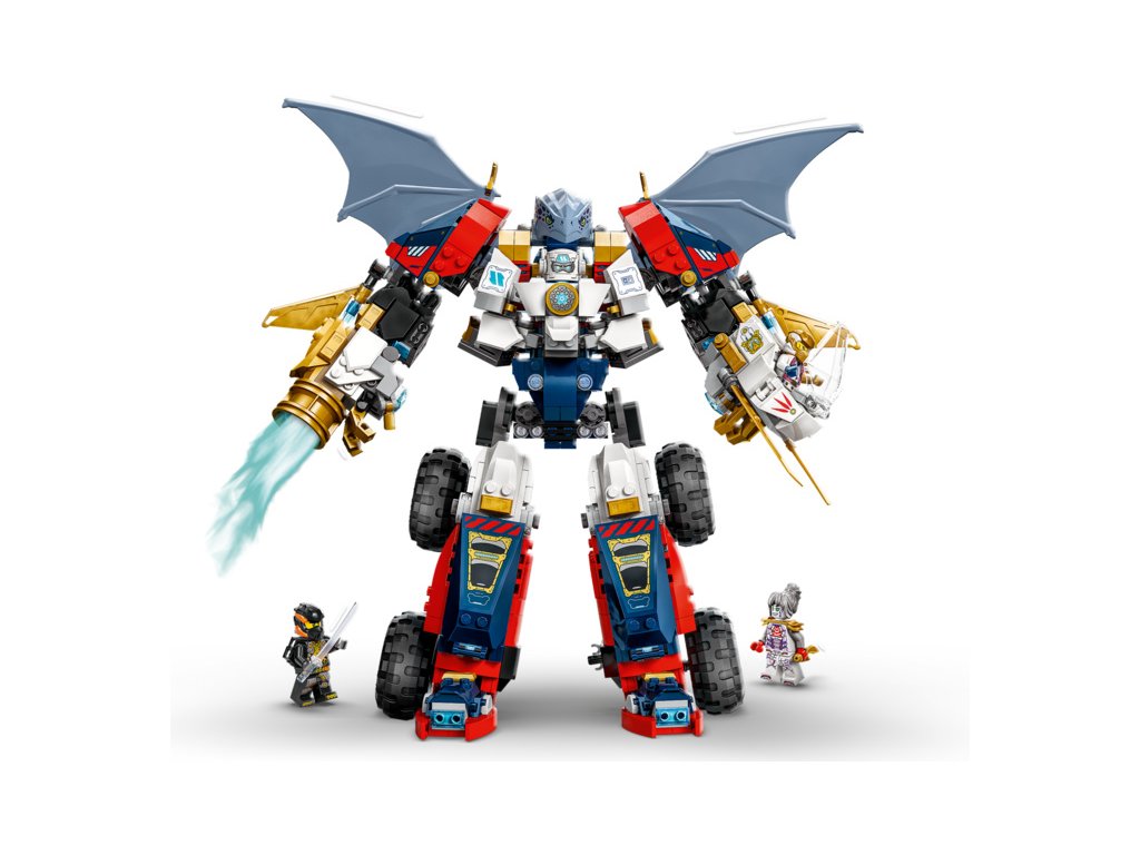 Kluci a holky od 9 let si užijí nekonečné herní možnosti při přehrávání napínavých scén ze 3. řady televizního seriálu NINJAGO® Dračí povstání se stavebnicí Zaneův ultrakombo robot (71834) 4 v 1.