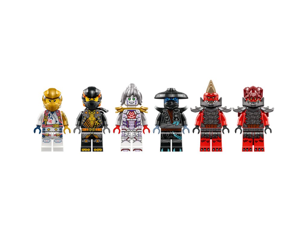- 6 minifigurek LEGO® NINJAGO® – Tato dobrodružná stavebnice obsahuje nindži Soru a Colea a jejich spojenkyni Pixal, kteří se utkají se zlotřilým triem: Noktem, dračím bojovníkem a dračím zvědem