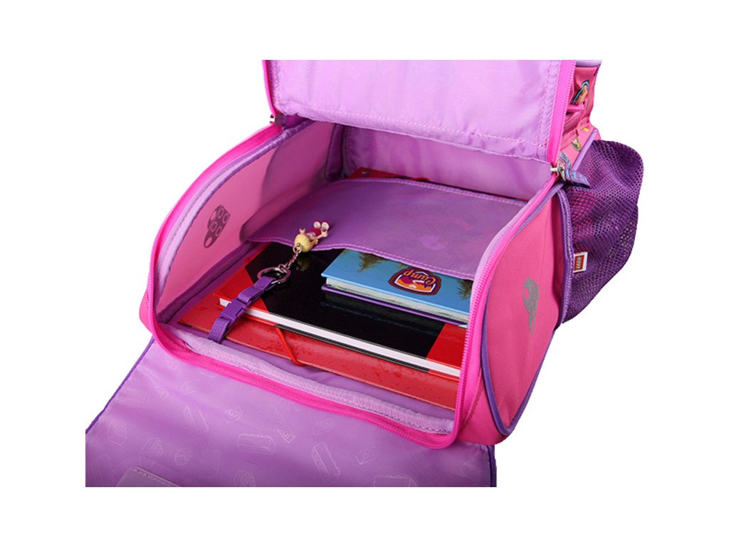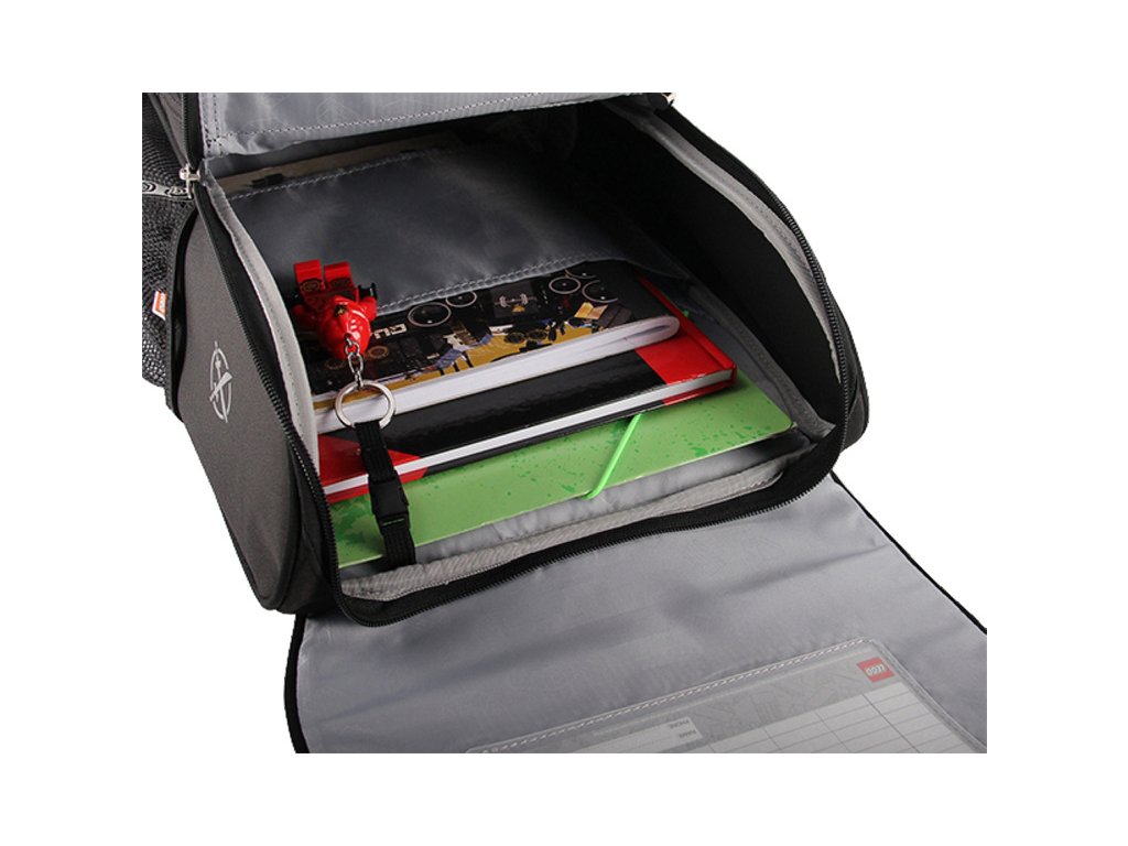 Praktická, lehká školní aktovka má vše důležité ke zvládnutí školních povinností, včetně odnímatelného batůžku na cvičební úbor a přední termo kapsy na svačinu, udržující ji čerstvou po celý den. Na přední straně aktovky se nachází speciální kapsa na penál. Na stranách najdete průhlednou a síťovanou kapsu např. na láhev s vodou, ovoce, či drobné předměty. V hlavní kapse najdete přihrádku pro těžší předměty, která je udrží u zad a zajistí rovnoměrné rozložení hmotnosti, všitou jmenovku či poutko na klíče, na které je možné připojit například i LEGO peněženku či LEGO kapsičku.