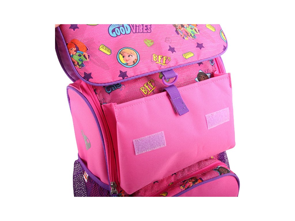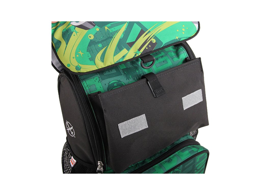 Praktická, lehká školní aktovka má vše důležité ke zvládnutí školních povinností, včetně odnímatelného batůžku na cvičební úbor a přední termo kapsy na svačinu, udržující ji čerstvou po celý den. Na přední straně aktovky se nachází speciální kapsa na penál. Na stranách najdete průhlednou a síťovanou kapsu např. na láhev s vodou, ovoce, či drobné předměty. V hlavní kapse najdete přihrádku pro těžší předměty, která je udrží u zad a zajistí rovnoměrné rozložení hmotnosti, všitou jmenovku či poutko na klíče, na které je možné připojit například i LEGO peněženku či LEGO kapsičku.
