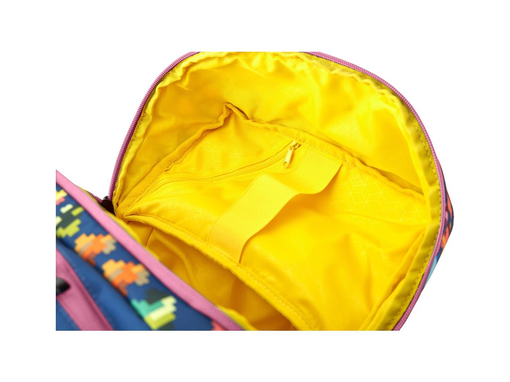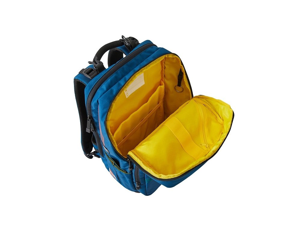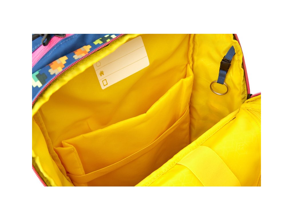 Hlavní kapsa je vybavena elastickým popruhem, který udrží těžší věci jako jsou učebnice u zad, pro zajištění rovnoměrného rozložení hmotnosti.