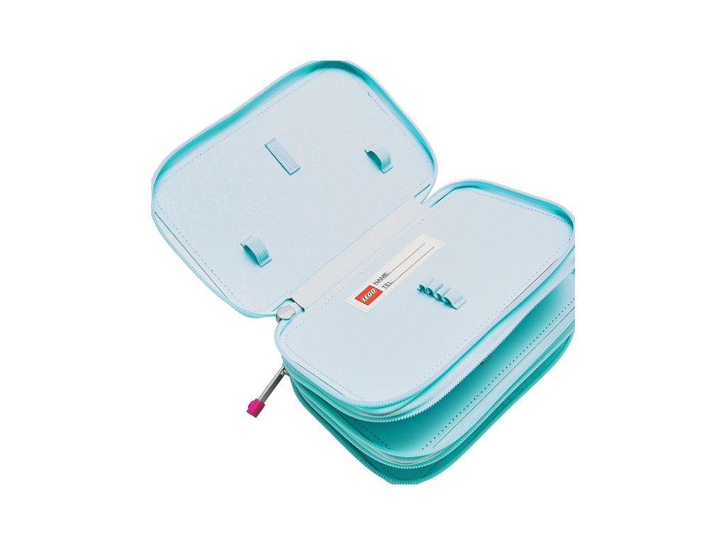 Nový 3-patrový penál s oblíbenými LEGO motivy. Tři přihrádky pro tužky, pera a další potřeby. Designová LEGO kostka 1x1 na zipu usnadňuje otevírání. Organizujte psací potřeby efektivně a stylově. Penál se prodává bez náplně. Rozměry: 19,5 x 6,5 x 13 cm, objem 1 litr.