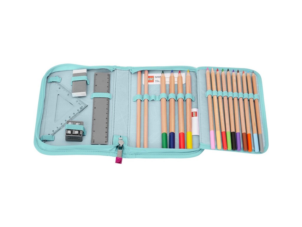 Pouzdro s náplní a motivem LEGO obsahuje všechny potřebné psací potřeby do školy. Pouzdro je dodáváno s náplní: 2 grafitové tužky, 10 barevných pastelek, 4 široké barevné pastelky, guma na gumování, ořezávátko, rovné a trojúhelníkové pravítko. Pouzdro obsahuje rozvrh hodin v průhledné kapse a všitou vnitřní jmenovku. Je vyrobeno z odolného materiálu bez použití PVC. Ideální pro první ročník základní školy.
