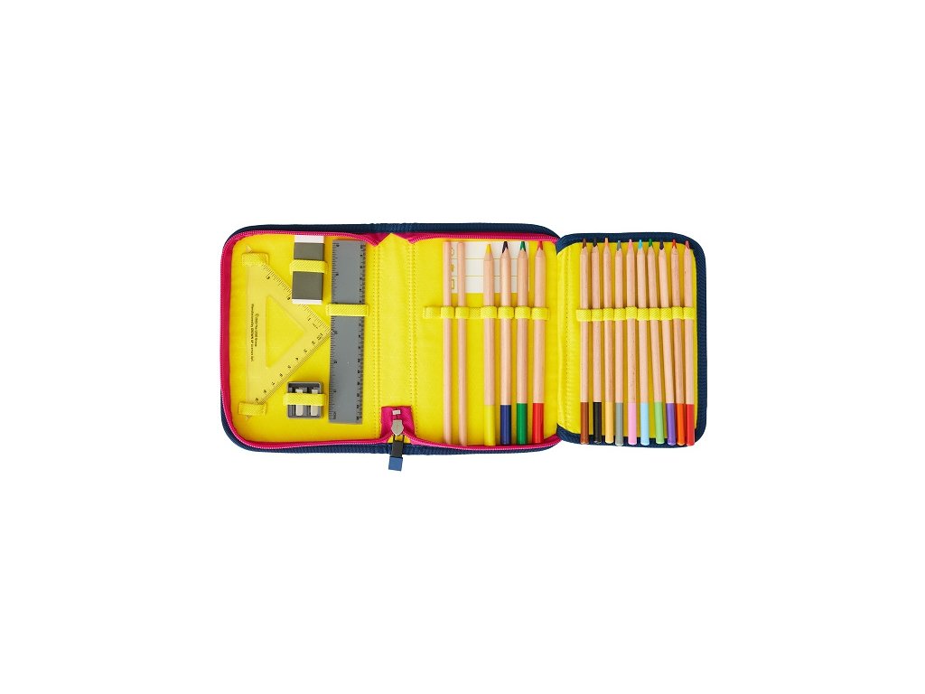 - Náplň: 2 tužky, 10 pastelek, 4 široké pastelky, guma na gumování, ořezávátko, 2 pravítka.