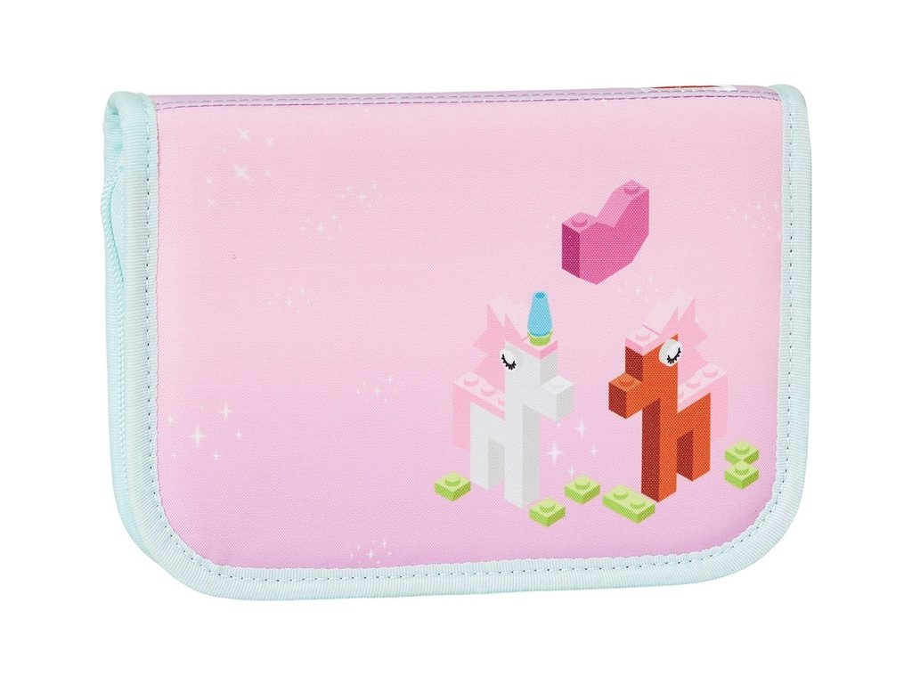 Pouzdro s náplní a motivem LEGO obsahuje všechny potřebné psací potřeby do školy. Pouzdro je dodáváno s náplní: 2 grafitové tužky, 10 barevných pastelek, 4 široké barevné pastelky, guma na gumování, ořezávátko, rovné a trojúhelníkové pravítko. Pouzdro obsahuje rozvrh hodin v průhledné kapse a všitou vnitřní jmenovku. Je vyrobeno z odolného materiálu bez použití PVC. Ideální pro první ročník základní školy.