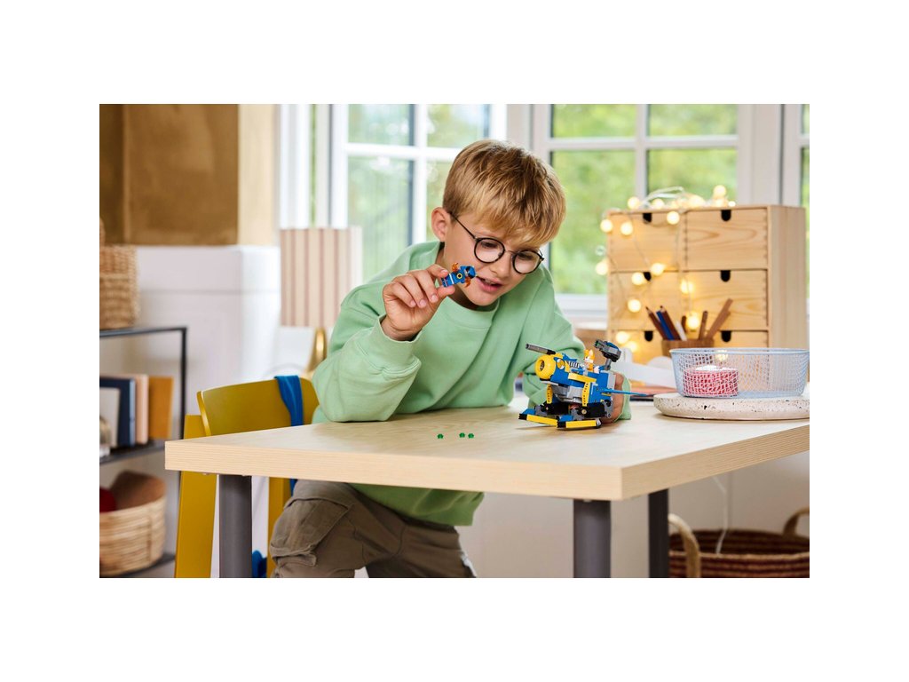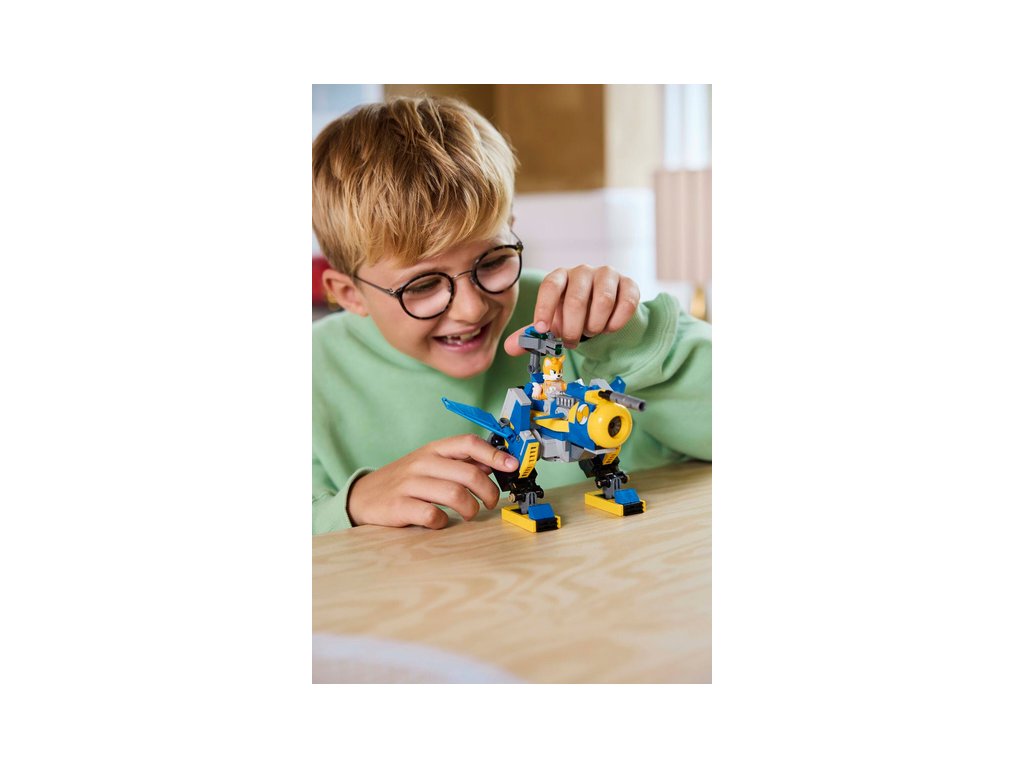 - Přestavitelný robot – Tato stavebnice LEGO® nastartuje akční zábavu s robotickým oblekem Tailse, který se po vyklopení nohou a otočení dopředu změní z režimu chůze na režim létání