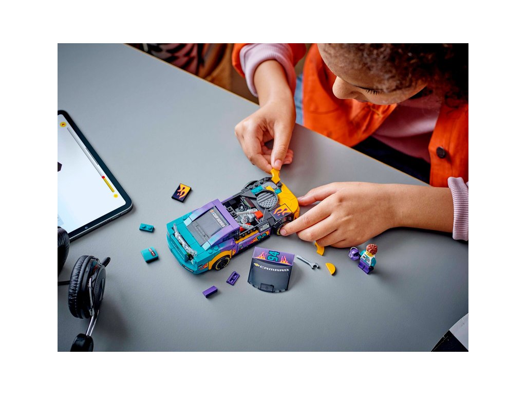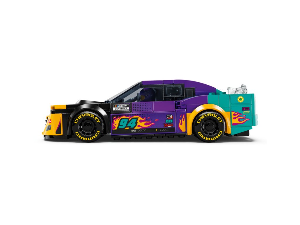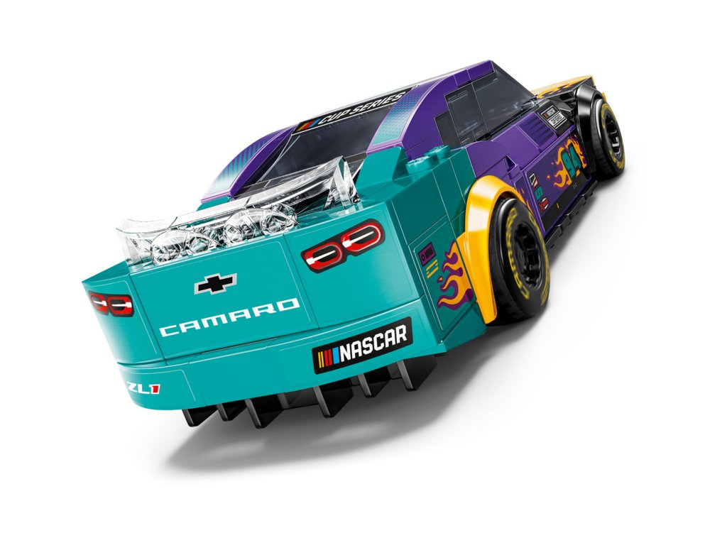 Model auta NASCAR obsahuje realistické prvky, jako je zadní spoiler, přední maska, kapota, světlomety a kola, interiér s ochrannou klecí, palubní deskou, řadicí pákou a hasicím přístrojem a autentická loga Camaro, Cup Series a NASCAR. Součástí stavebnice závodního vozu je také minifigurka jezdce NASCAR, kterou děti posadí za volant a pustí se s ní do strhujících závodů.