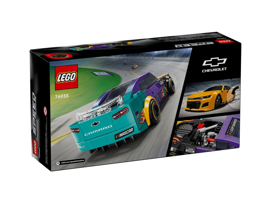 Kluci a holky od 9 let a fanoušci NASCAR® mohou si postaví a vystaví stavebnici LEGO® Speed Champions (76935) NASCAR Next Gen Chevrolet Camaro ZL1 pro děti. Tento výkonný závodní vůz se chlubí zářivými barvami a plameny a pyšní se designovými detaily ze skutečných vozů, které závodí v lize NASCAR Cup Series.